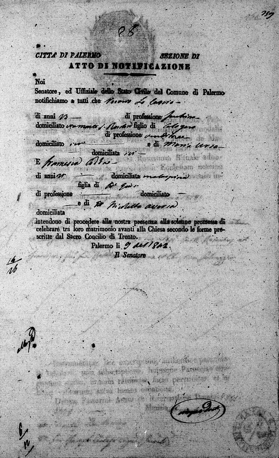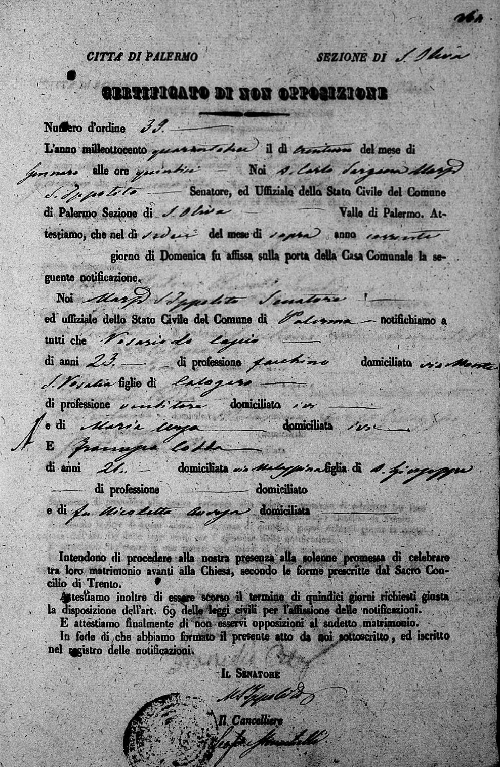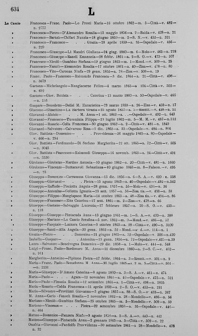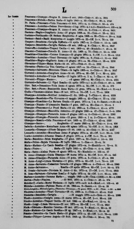 Francesco Paolo Lo Cascio were married on September 13, 1861 in Molo, Palermo, Sicilia, Italy. She died.