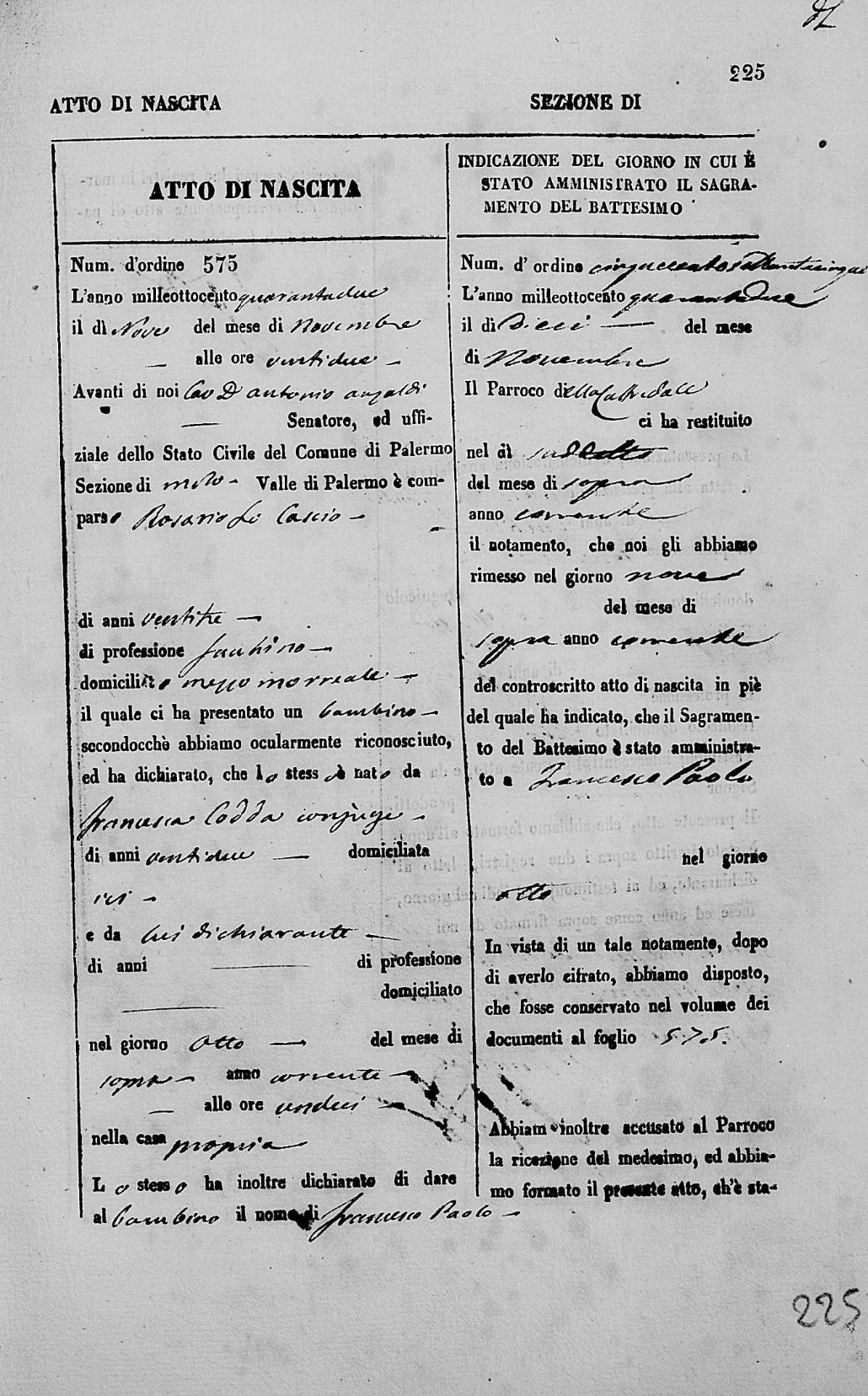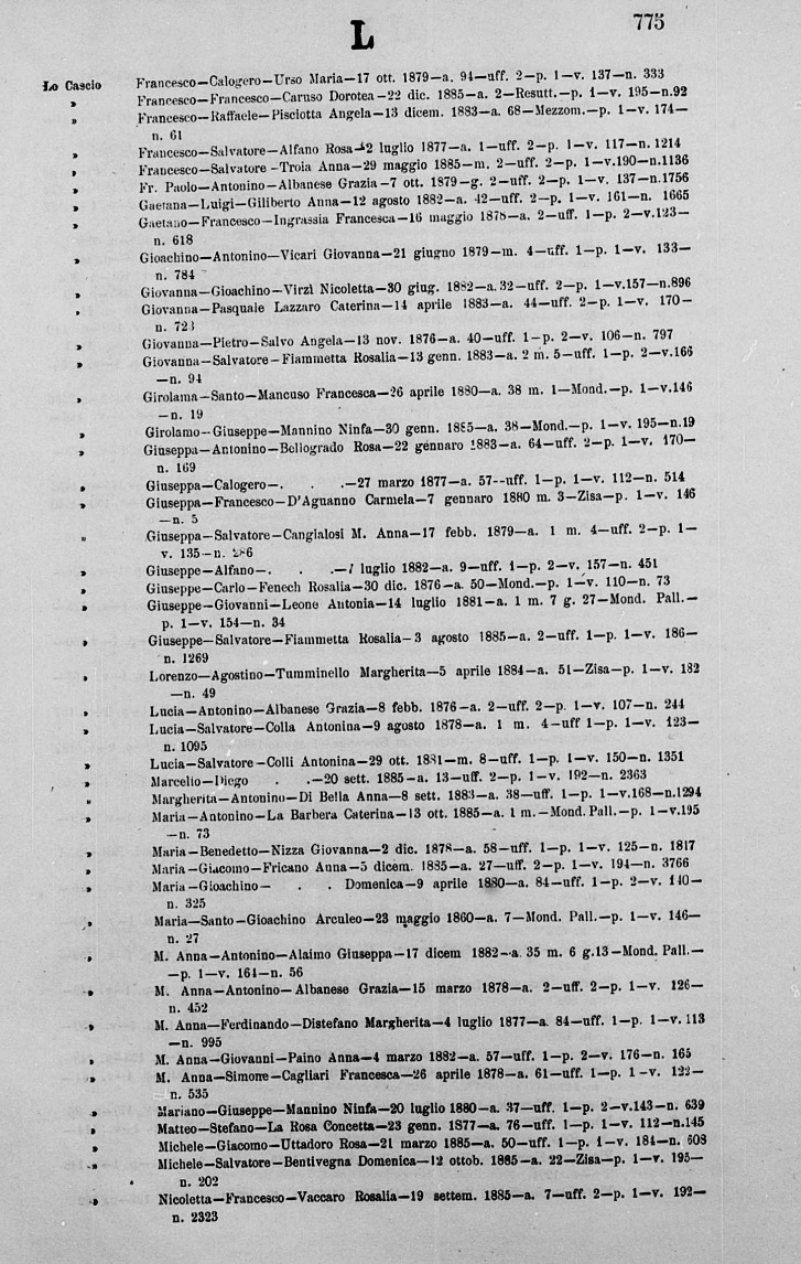 Francesco Paolo Lo Cascio was born on November 8, 1842 in Molo, Palermo, Sicilia, Italy. He and