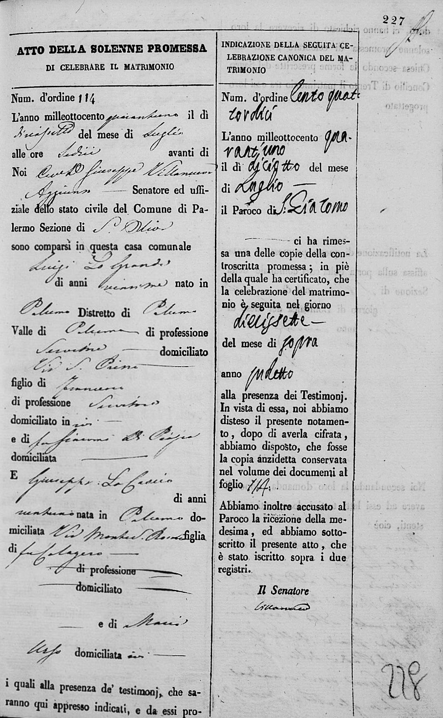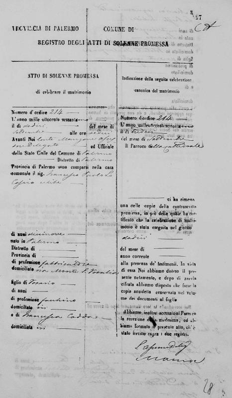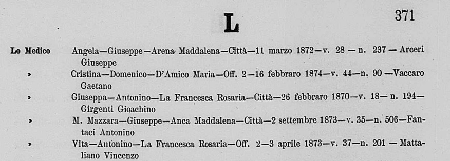 Maria Lo Presti were married on September 13, 1861 in Molo, Palermo, Sicilia, Italy. He died.
