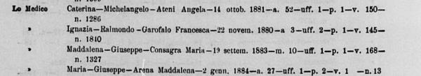 Maria Lomedico was born in 1857 in Palermo, Sicilia, Italy. She and
