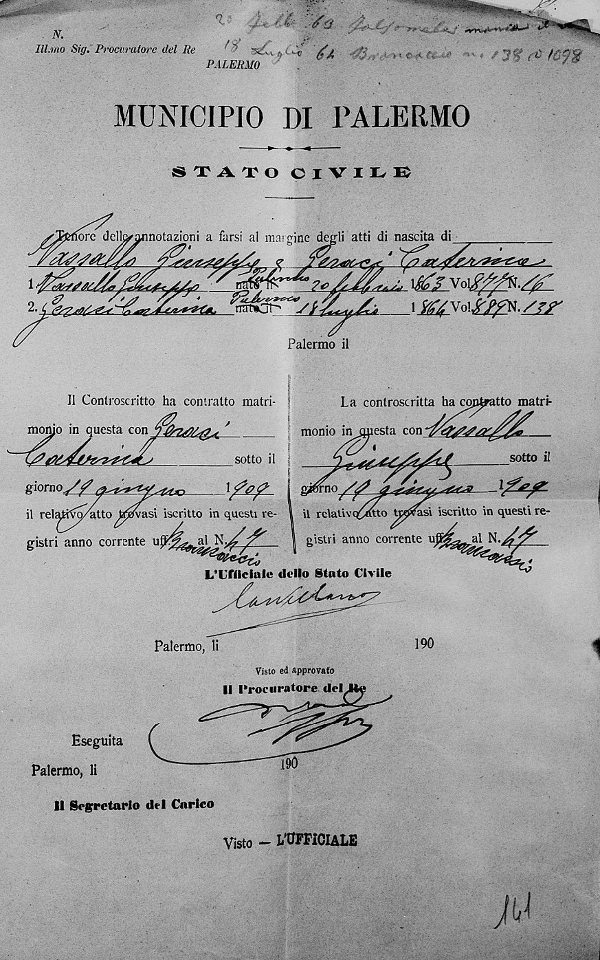 Giuseppe Vassallo were married on June 19, 1909 in Brancaccio, Palermo, Sicilia, Italy. She died.