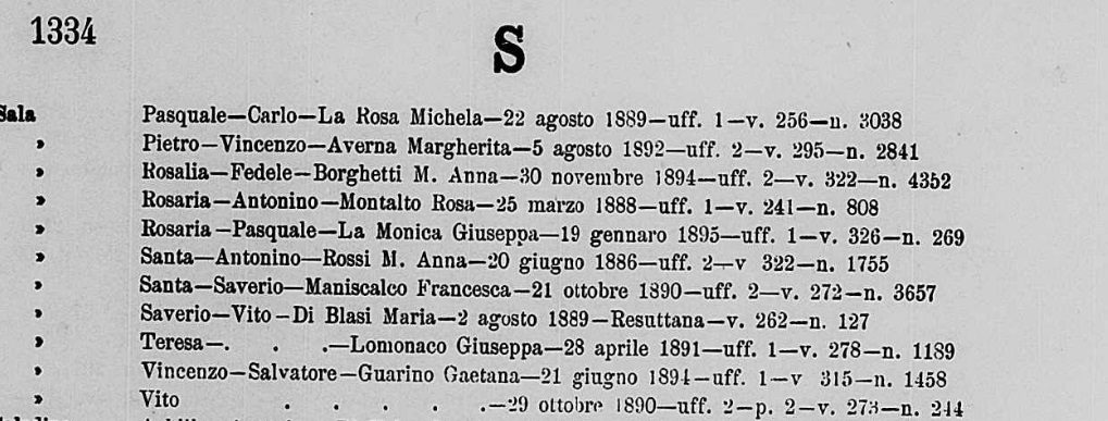 Giuseppa Borruso were married on November 4, 1893 in Palermo, Sicilia, Italy. He died.