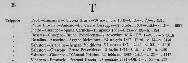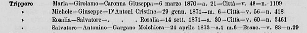 Salvatore Trippodo was born on August 24, 1871 in Palermo, Sicilia, Italy. He died on April 24, 1873, at age 1, in Palermo, Sicilia, Italy.