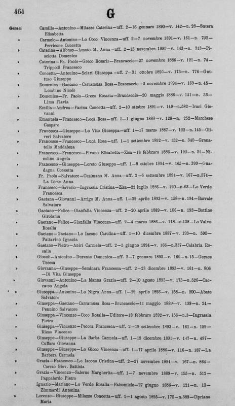 Caterina Geraci were married on November 27, 1886 in Palermo, Sicilia, Italy. He died.