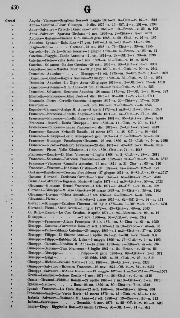 Onofrio Geraci was born on December 21, 1854 in Brancaccio, Palermo, Sicilia, Italy. He died.