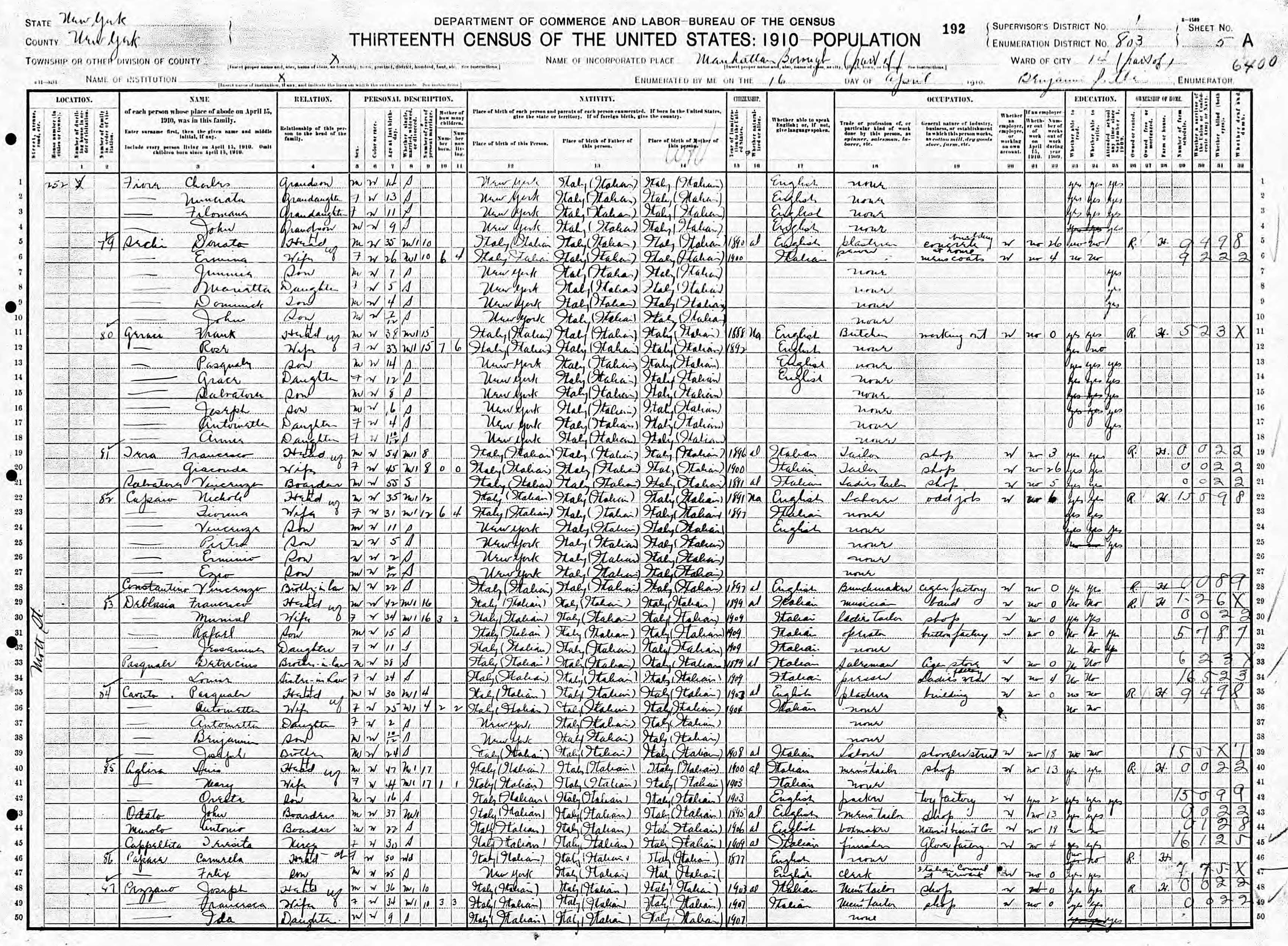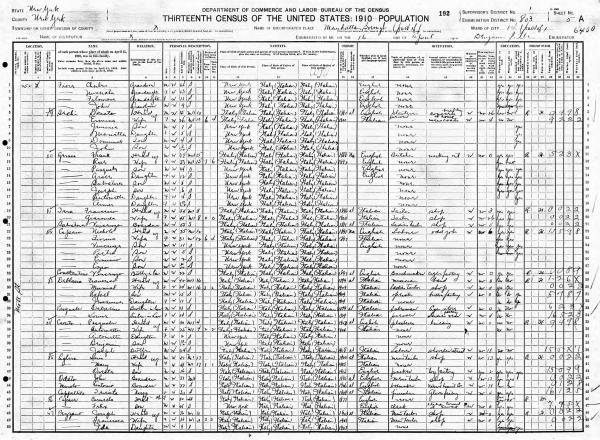 Geraci Family 1910 Federal Census New York, Lines 11-18