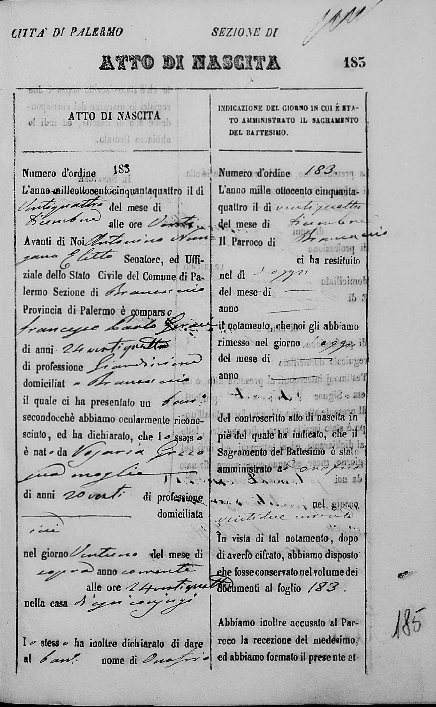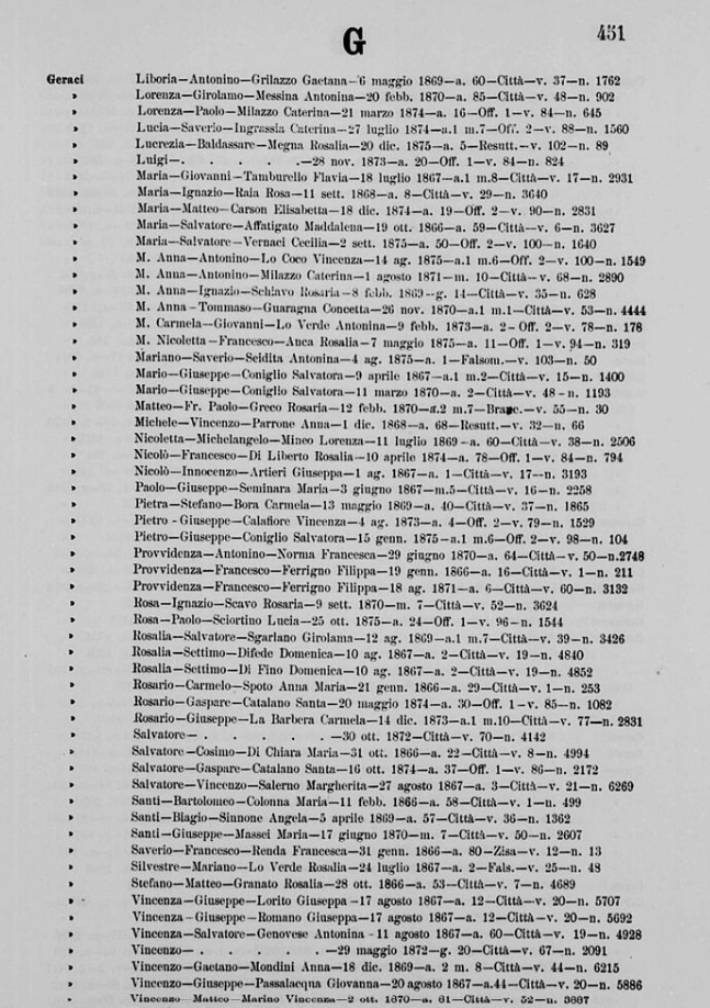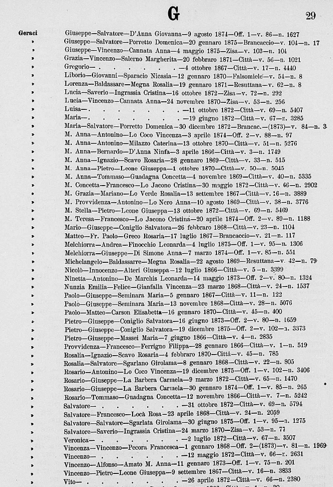 Rosa Geraci were married on April 29, 1882 in Palermo, Sicilia, Italy. He died.