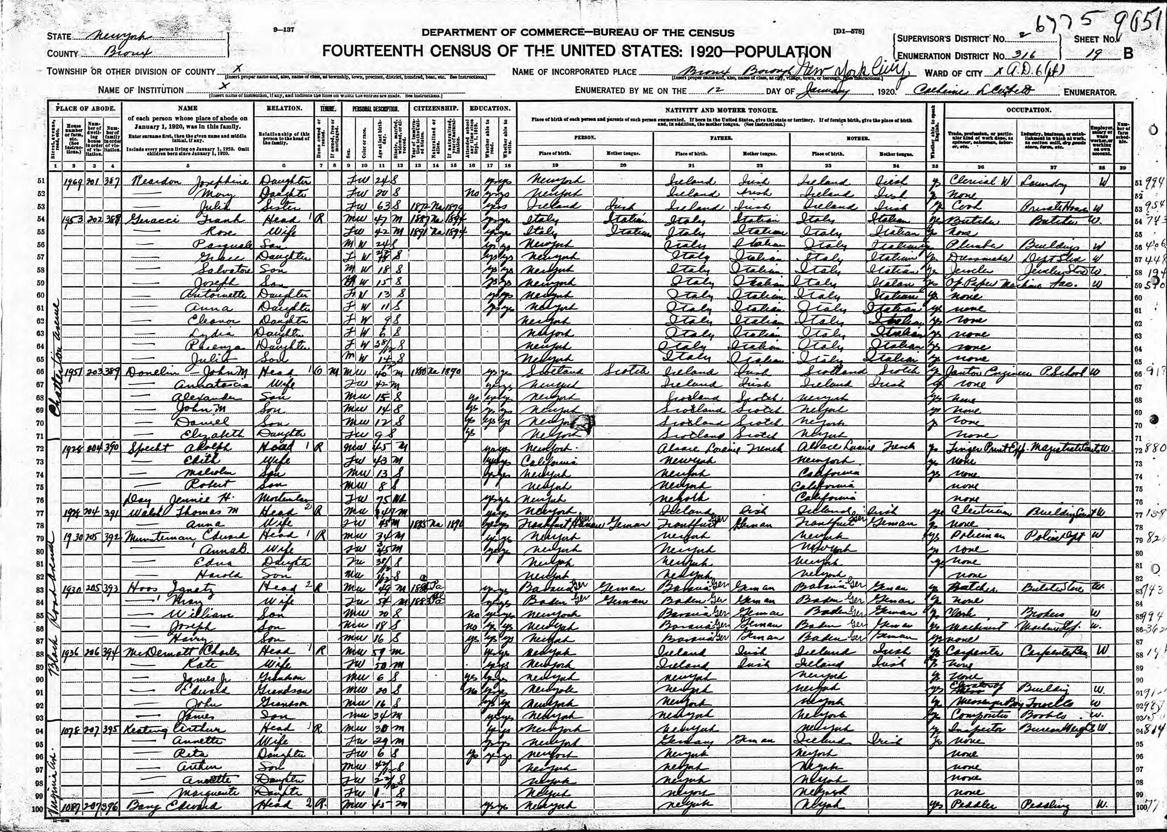Geraci Family 1920 Federal Census New York, Lines 54-65