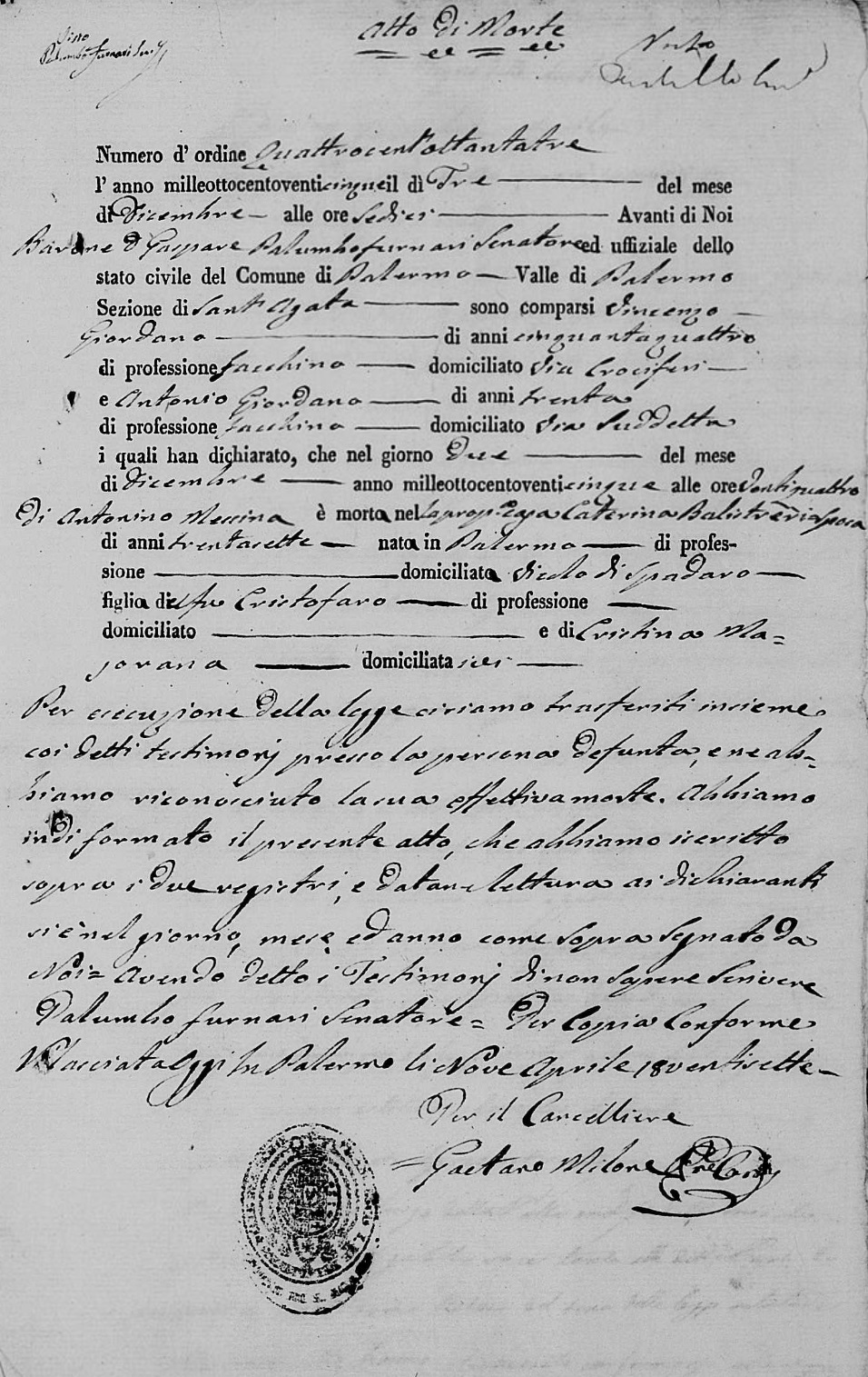 Caterina Balistreri was born in 1788 in Palermo, Sicilia, Italy. She and