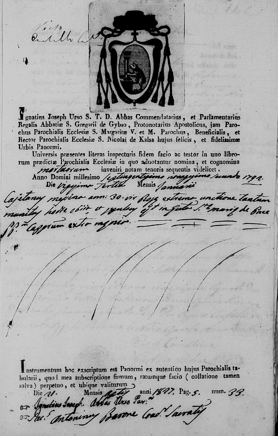 Rosa Galiota were married. He died on January 23, 1792, at age ~30, in Palermo, Sicilia, Italy.