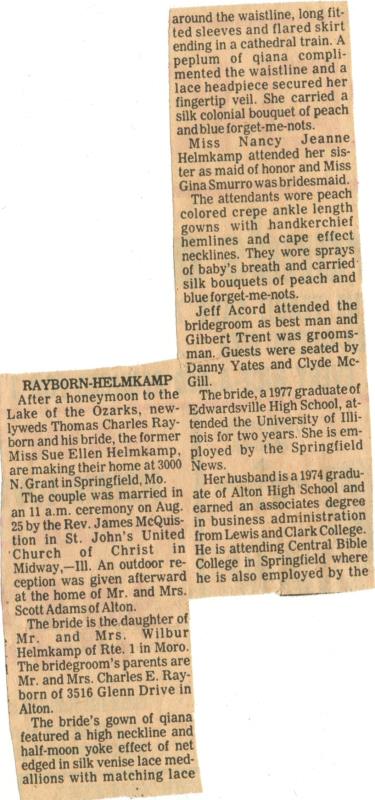 Thomas Charles Rayborn were married August 25, in Midway, Madison, Illinois, USA.
