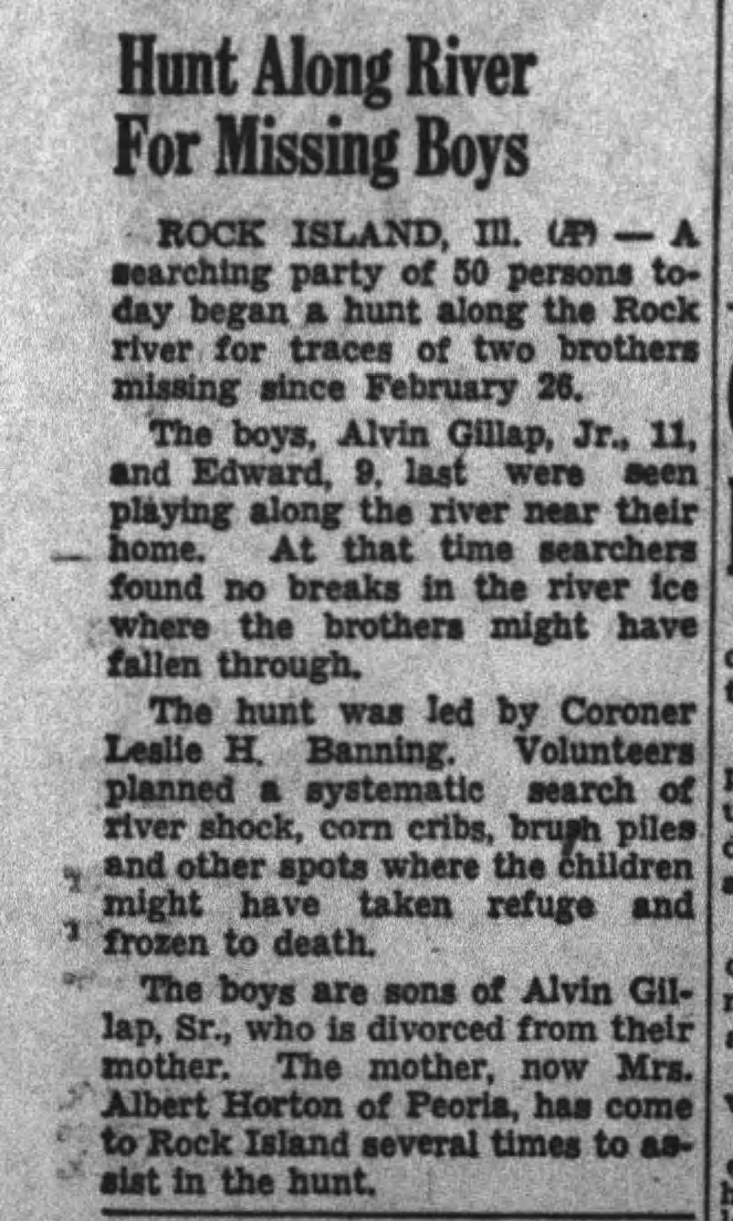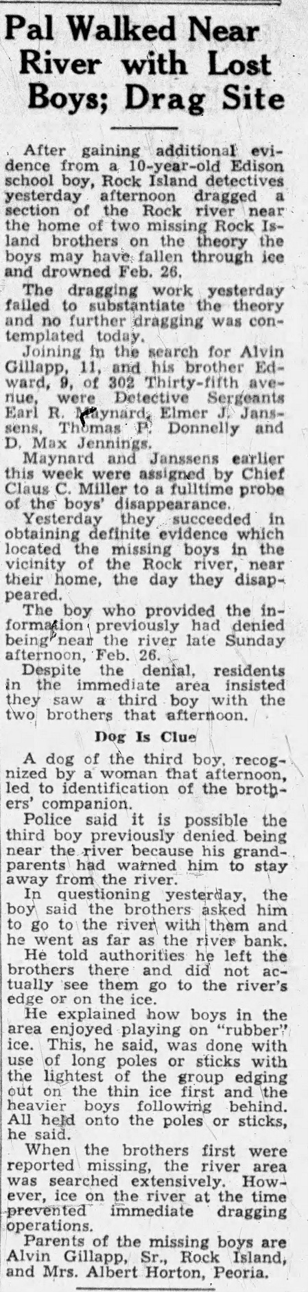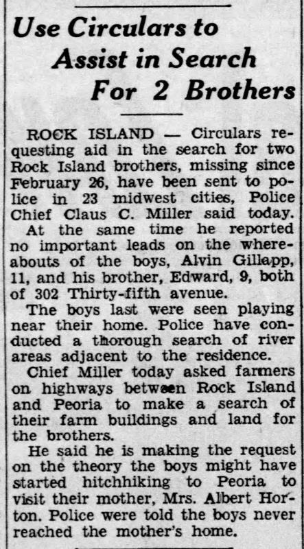 Alvin Earl "Buddy" Gillapp was born on December 5, 1938 in Illinois, USA. He died on February 2, 1950, at age 11, in Rock Island, Rock Island, Illinois, USA. He was buried in Rock Island Memorial Park Cemetery, Rock Island, Illinois.