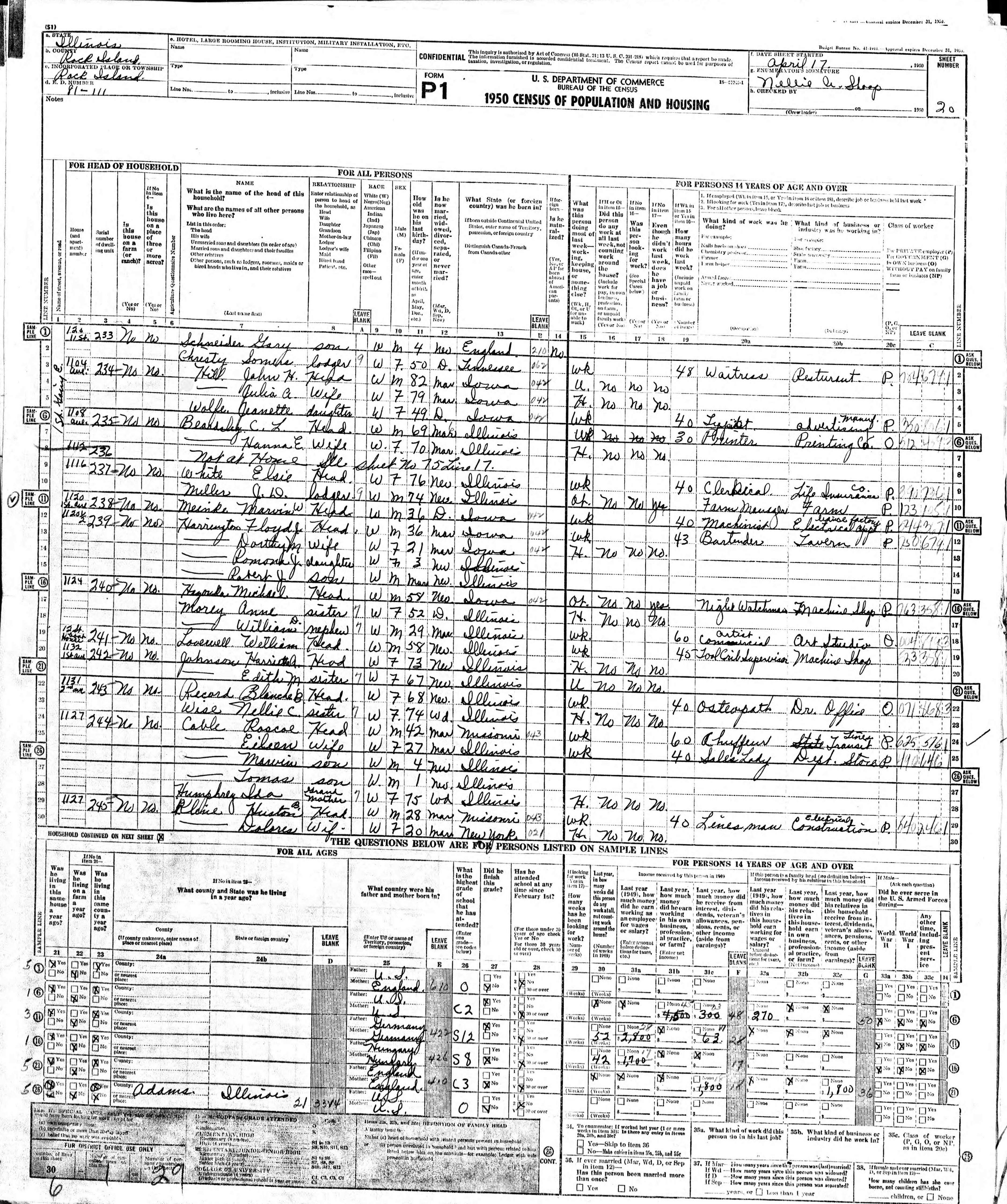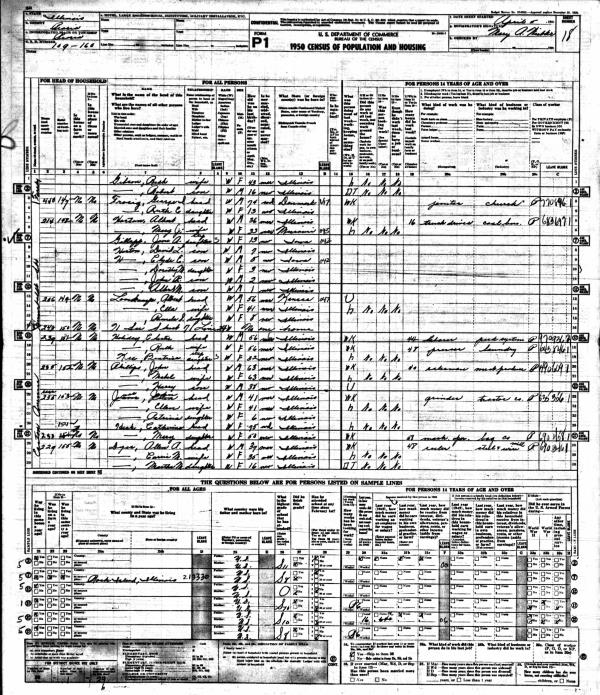 Harrington Family 1950 Federal Census Illinois, Lines 12-15