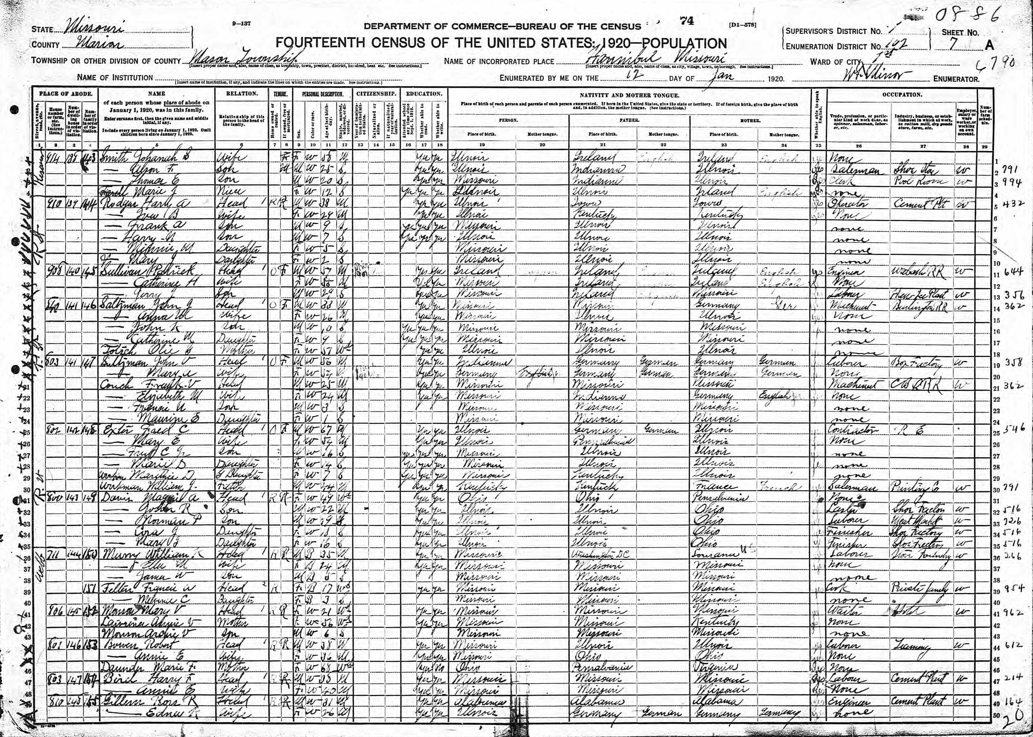 Rogers Family 1920 Federal Census Missouri, Lines 5-13