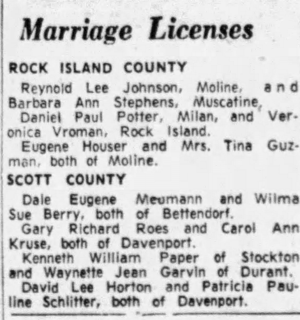 Mary Jane Rogers were married on October 12, 1935 in Rock Island, Rock Island, Illinois, USA. He and