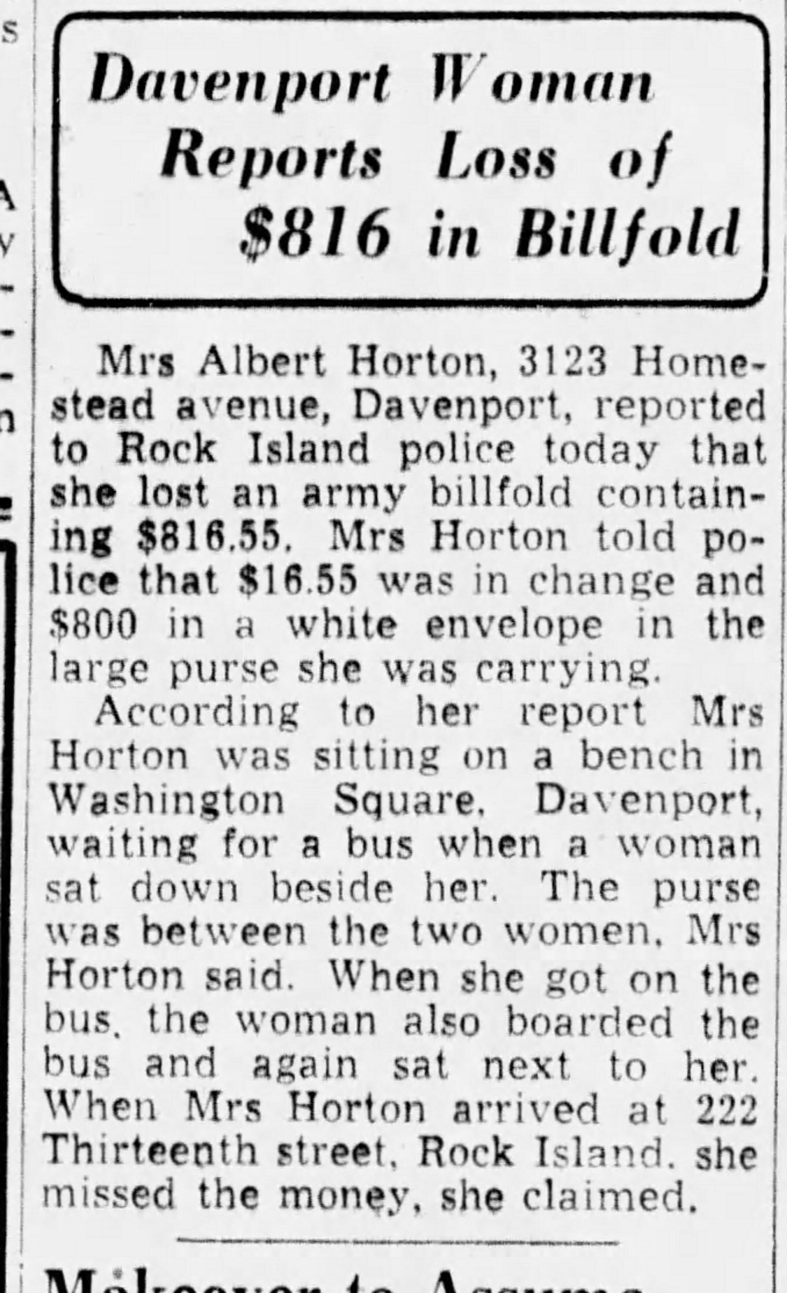Sophia J. Reynolds were married in 1951. He died on July 22, 1979, at age 68. He was buried in Fairmount Cemetery, Davenport, Iowa.