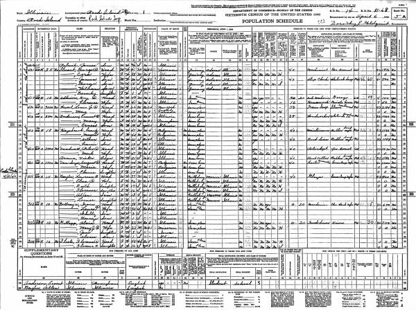 Gillapp Family 1940 Federal Census Illinois, Lines 35-38