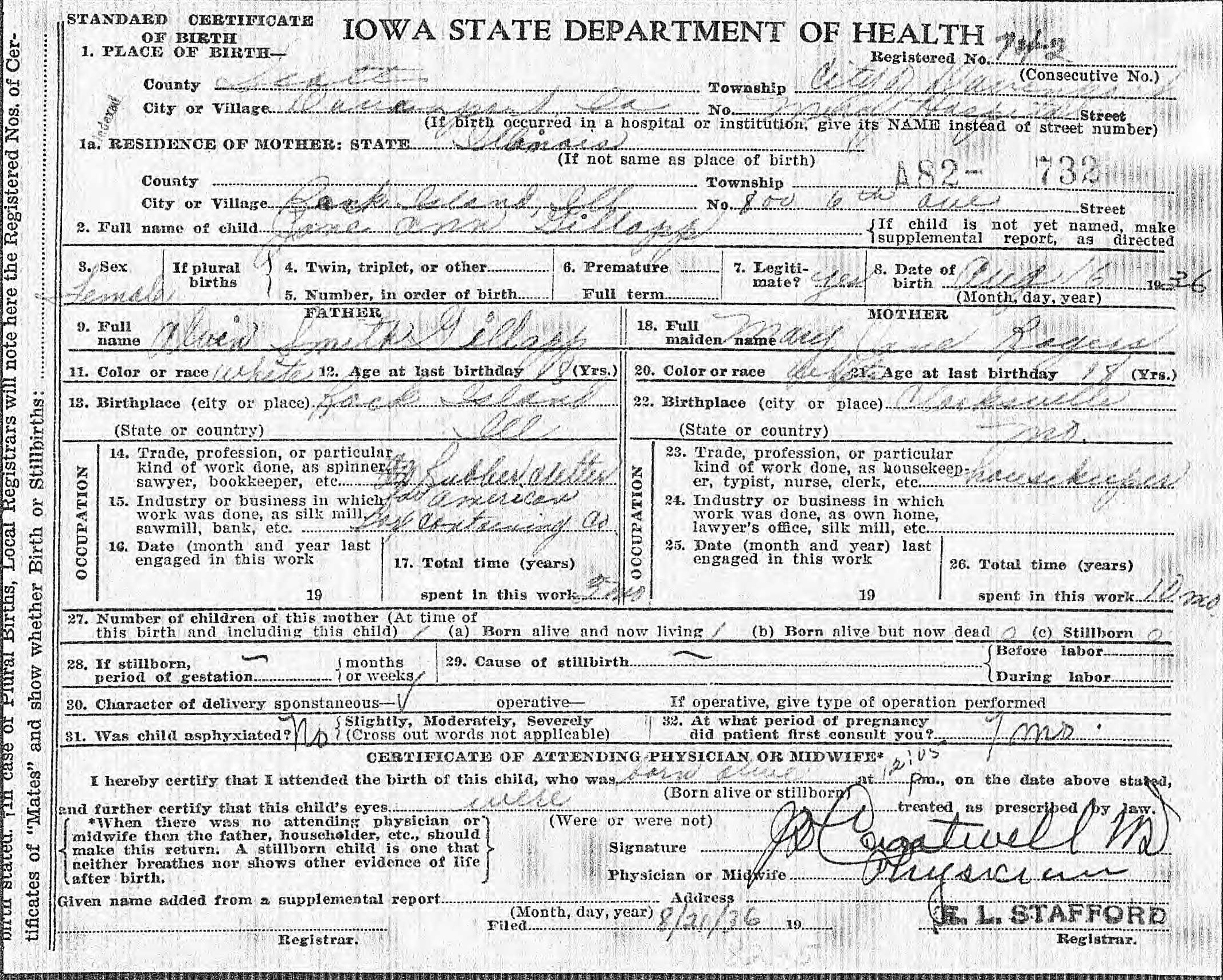 | Daughter | June Ruth Marie Horton Born: 1928 |