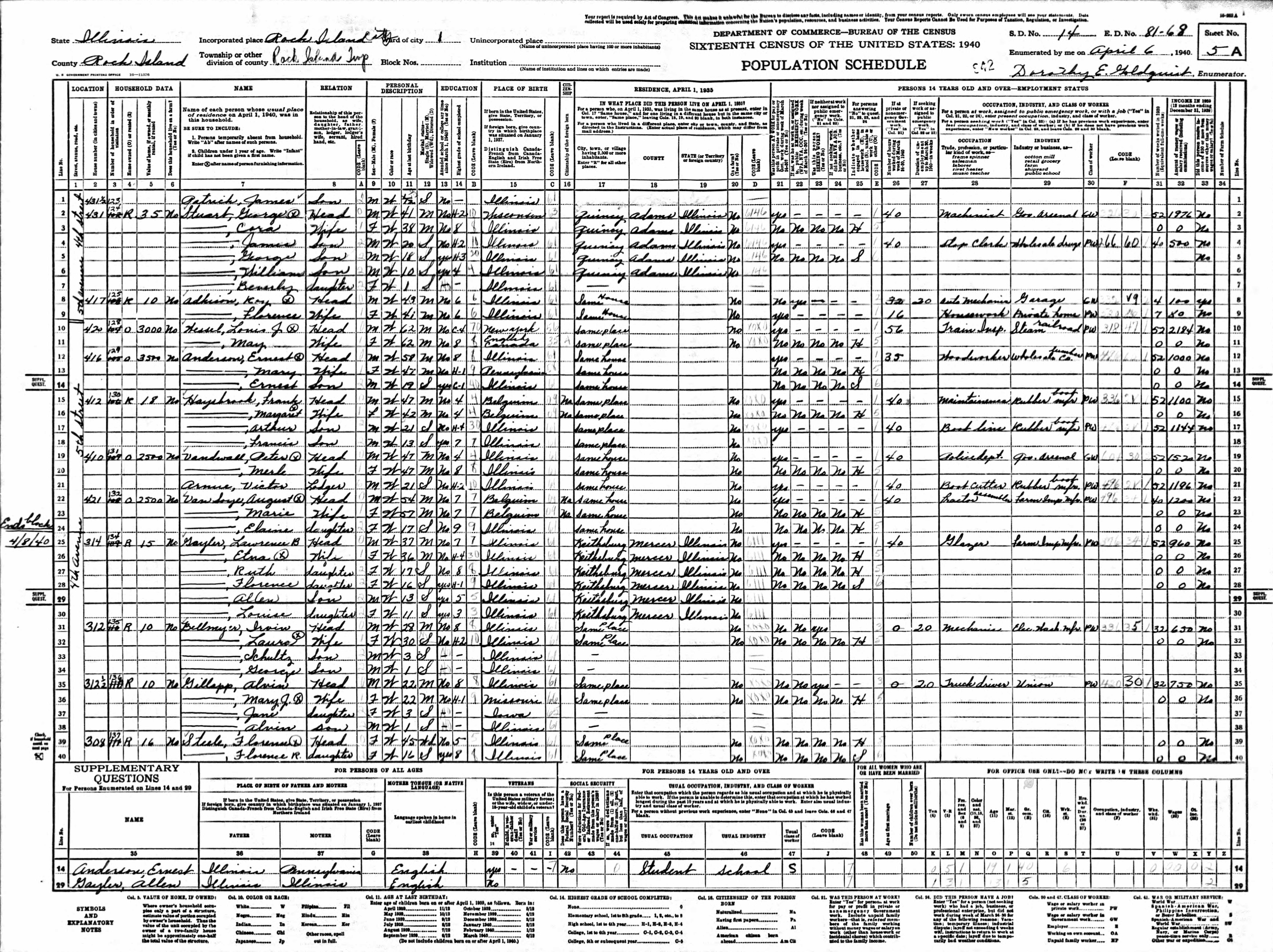 Horton Family 1940 Federal Census Illinois, Lines 62-71