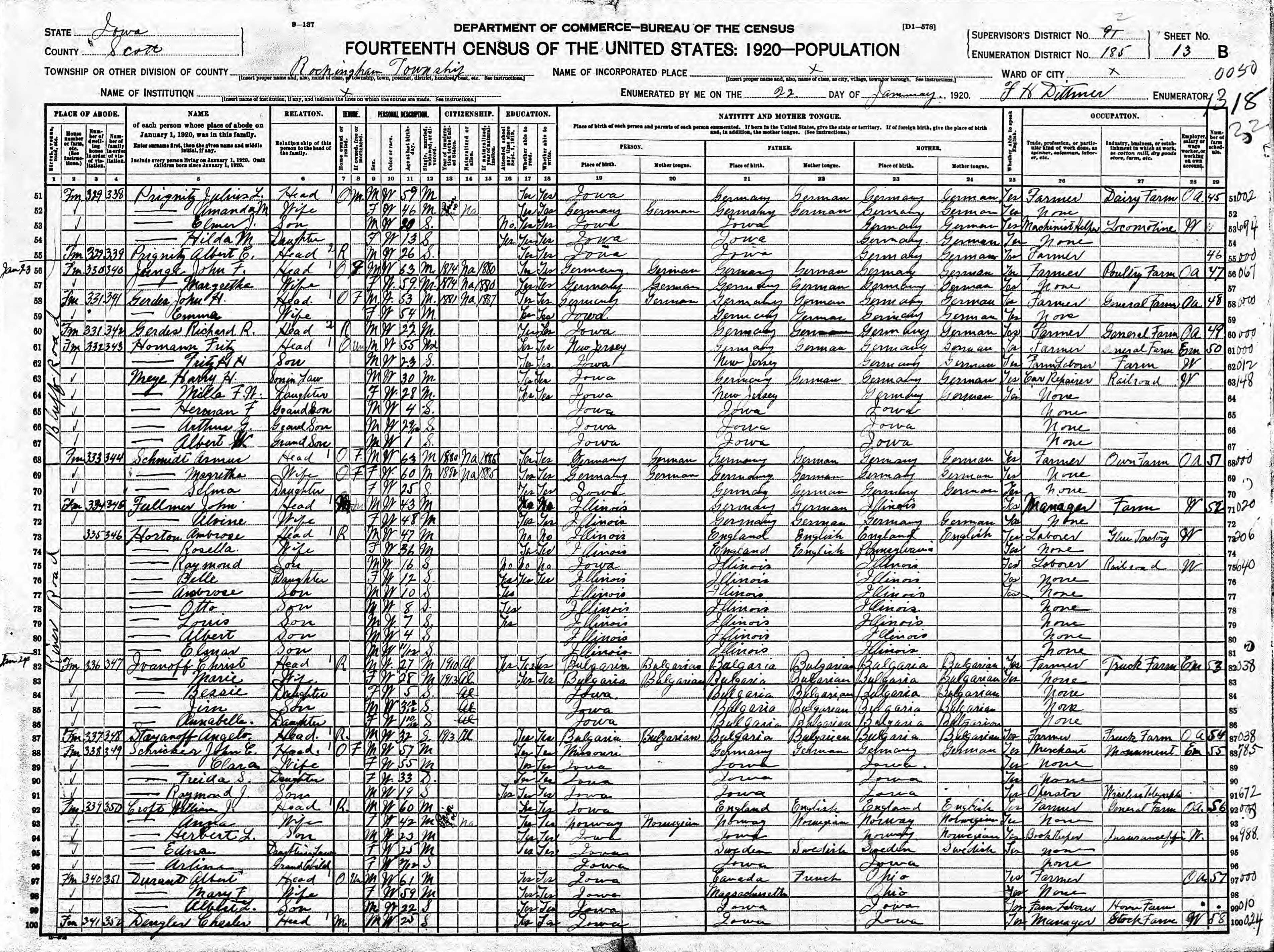 Horton Family 1920 Federal Census Iowa, Lines 73-81