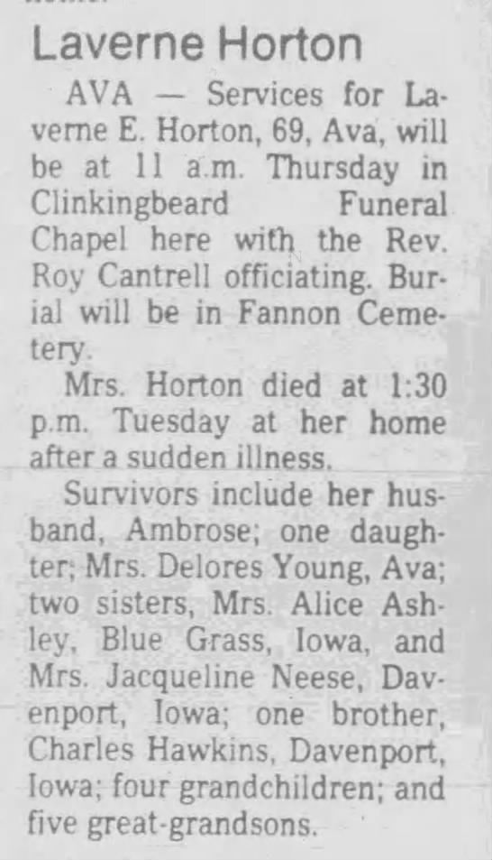 | Son | Delbert Wayne Horton Born: April 19, 1937, Died: February 12, 1996 |