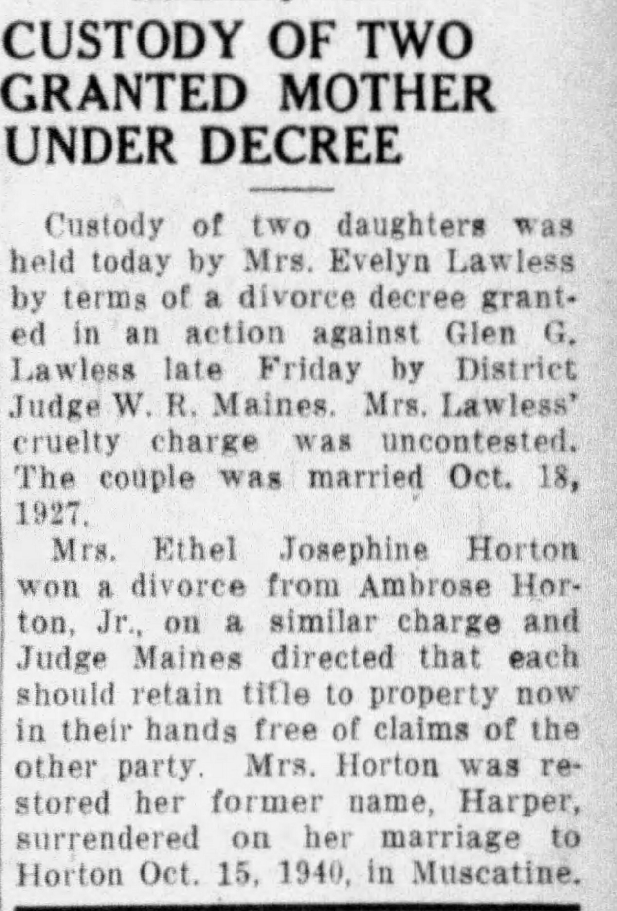 | Daughter | Judy Horton |