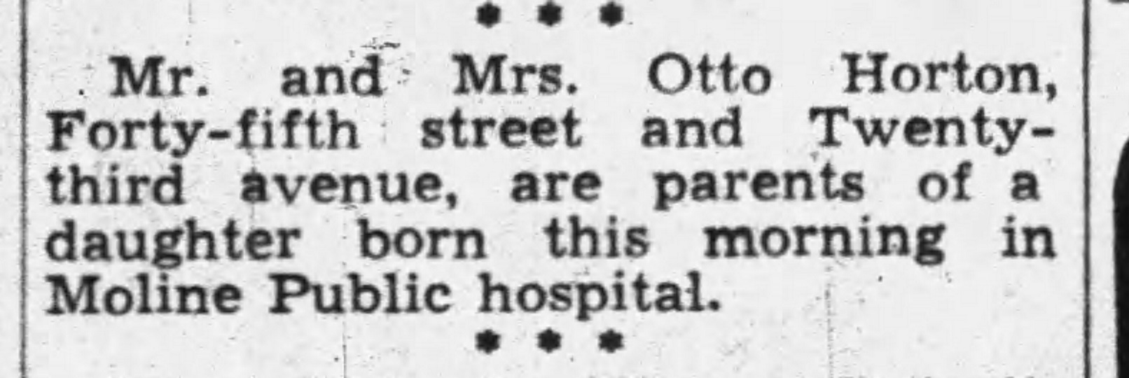 1937 Birth Announcement Article