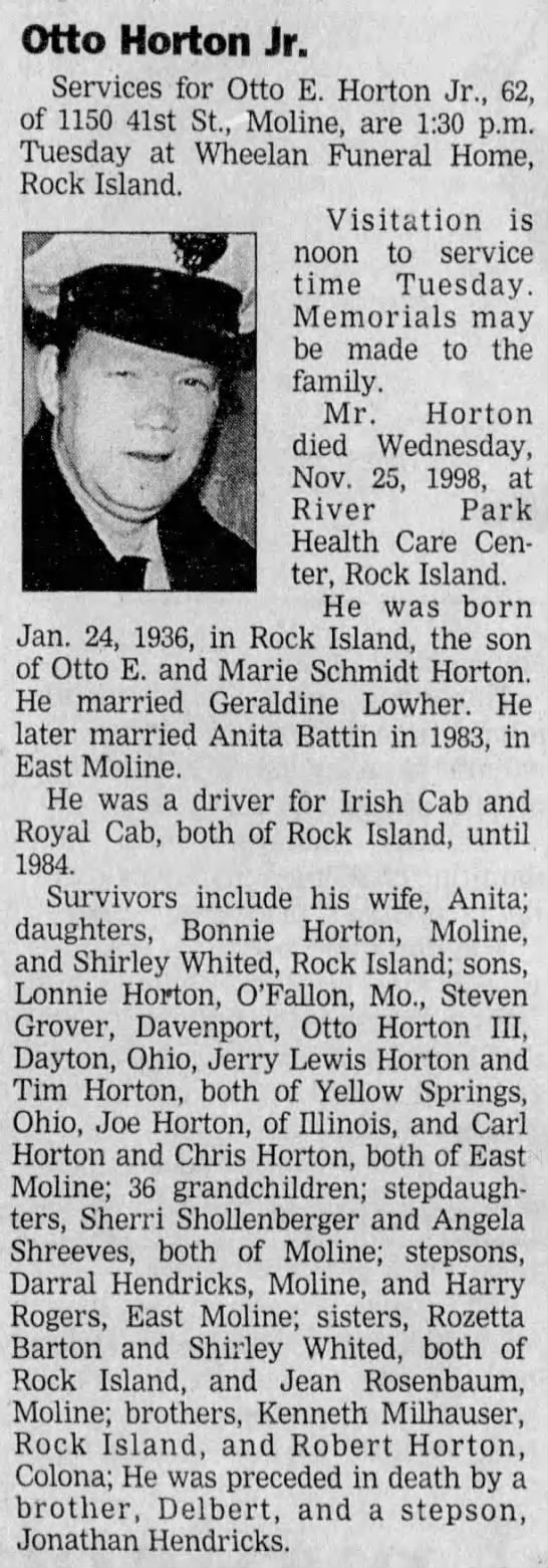 Otto E. Horton, II, was born on January 24, 1936 in Rock Island, Rock Island, Illinois, USA. He and