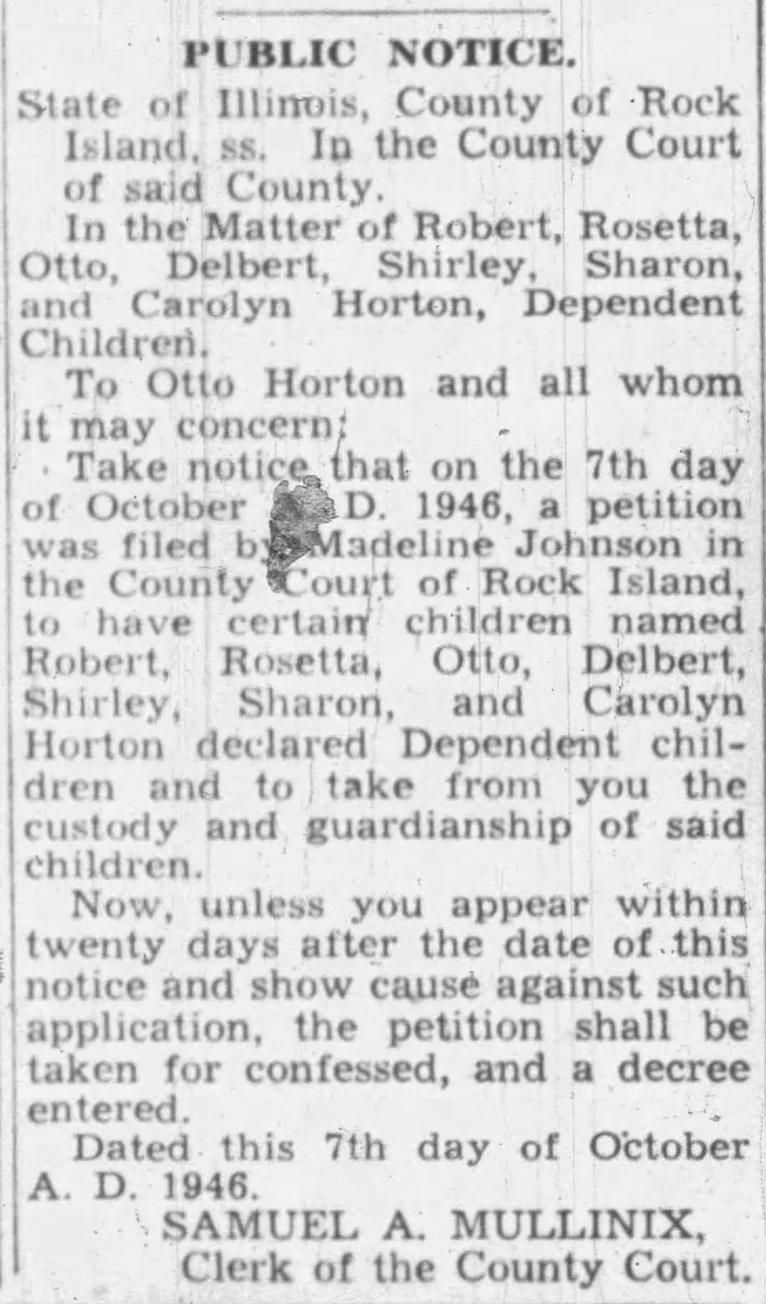 Otto E. Horton, Sr., were divorced in July 1948 in Rock Island, Rock Island, Illinois, USA. She and