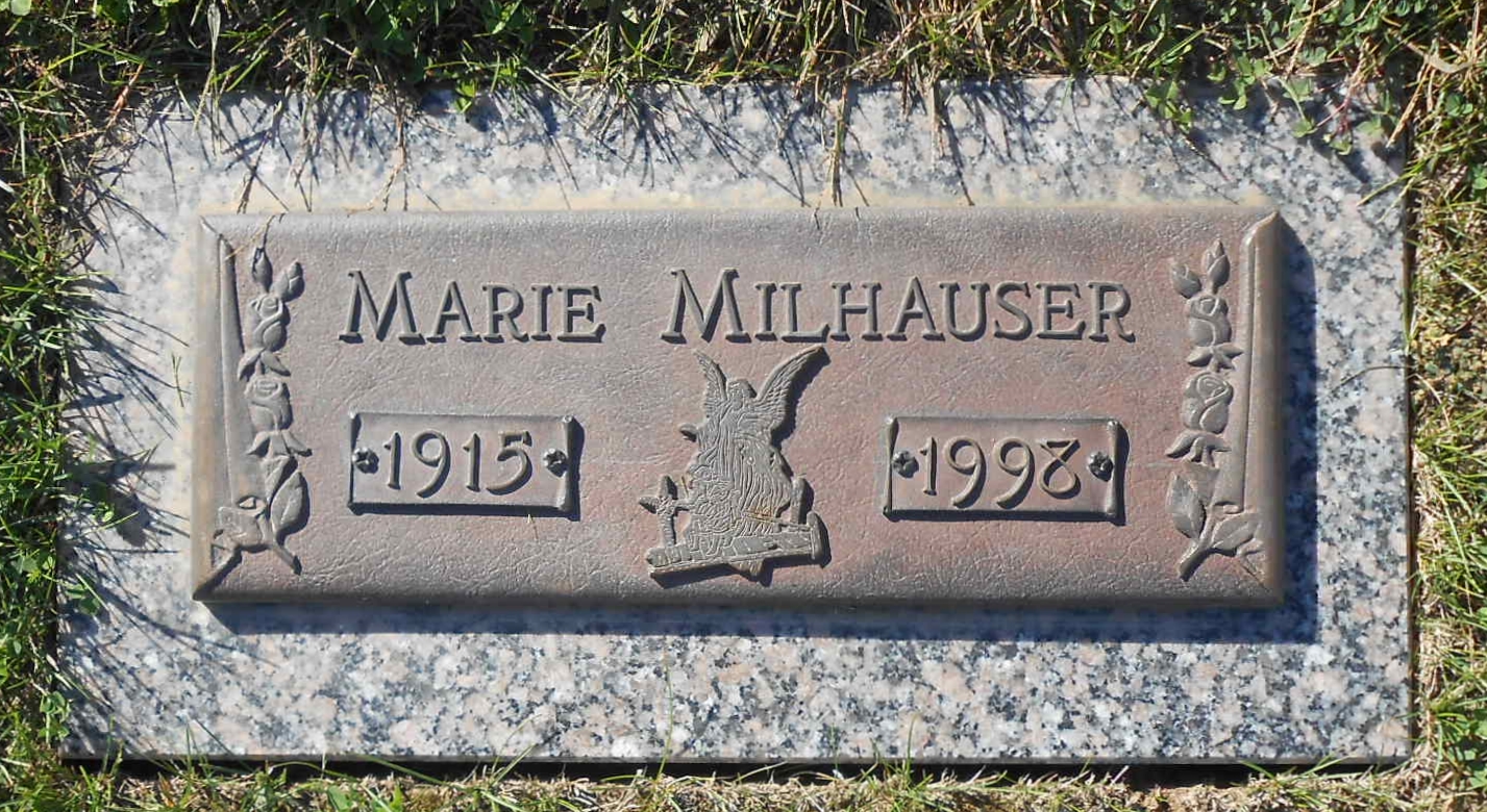 Louis Milhauser, Jr., were married in 1949 in Rock Island, Rock Island, Illinois, USA. She died on October 8, 1998, at age 83, in Rock Island, Rock Island, Illinois, USA. She was buried in Greenview Memorial Gardens, East Moline, Illinois.