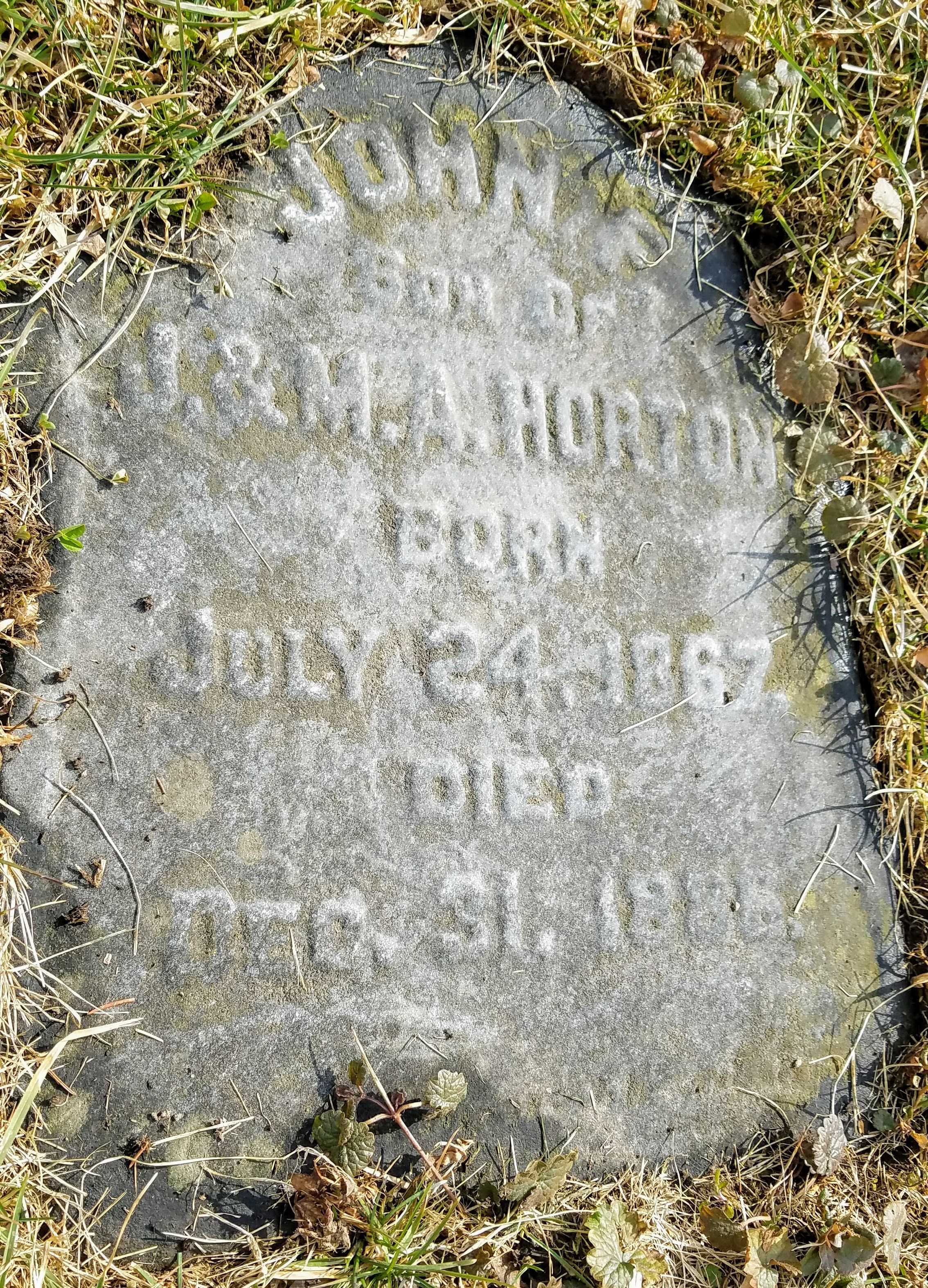 John F. Horton was born on July 24, 1867. He died on December 31, 1886, at age 19. He was buried in Chippiannock Cemetery, Rock Island, Illinois.