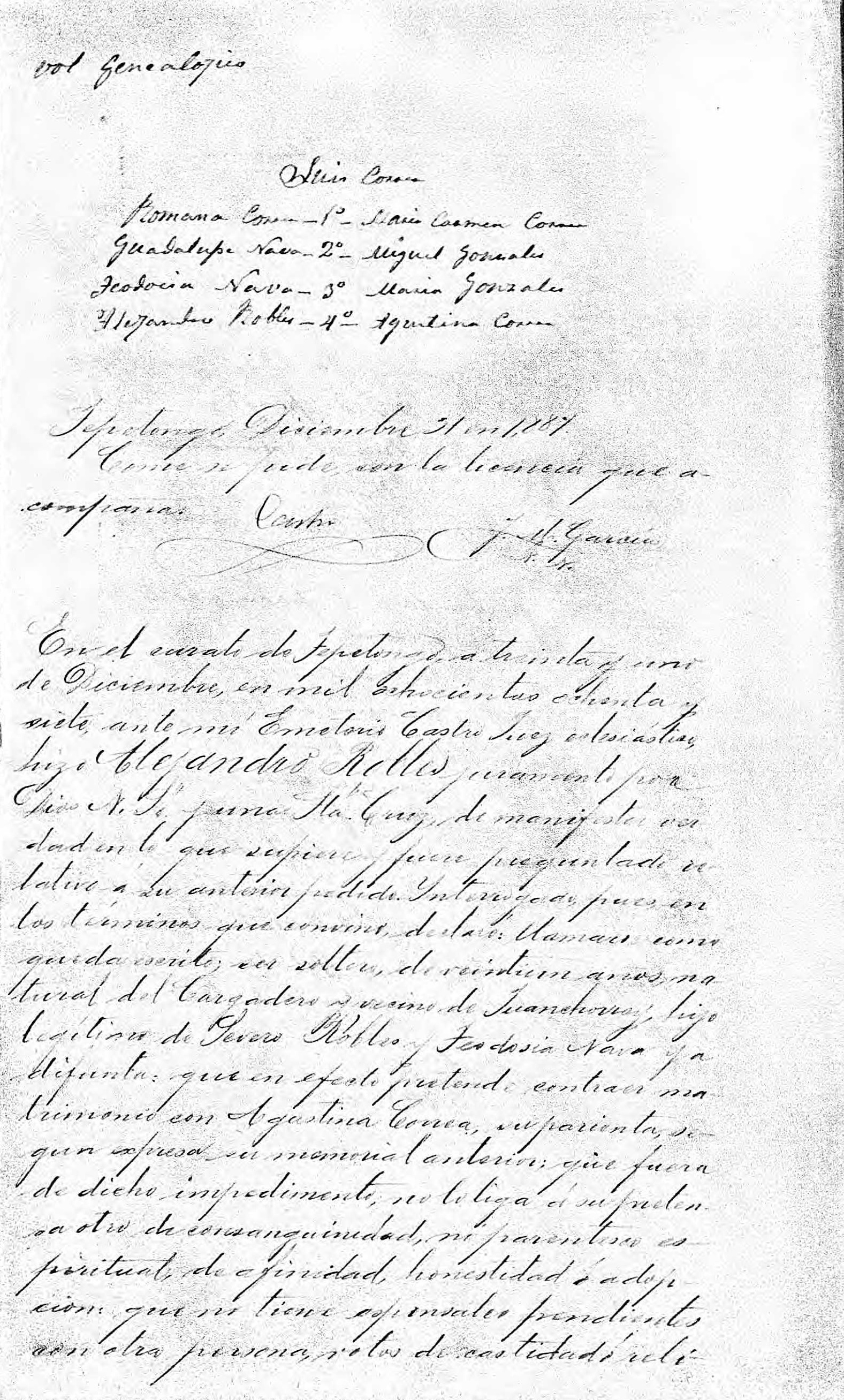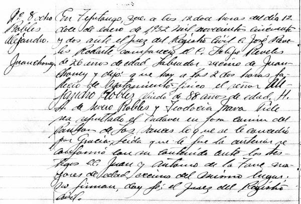 Alejandro Robles were married on December 31, 1887 in Tepetongo, Zacatecas, Mexico. She died.