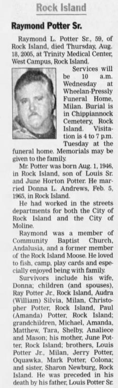 Raymond Louis Potter, Sr., was born on August 1, 1946 in Rock Island, Rock Island, Illinois, USA. He and