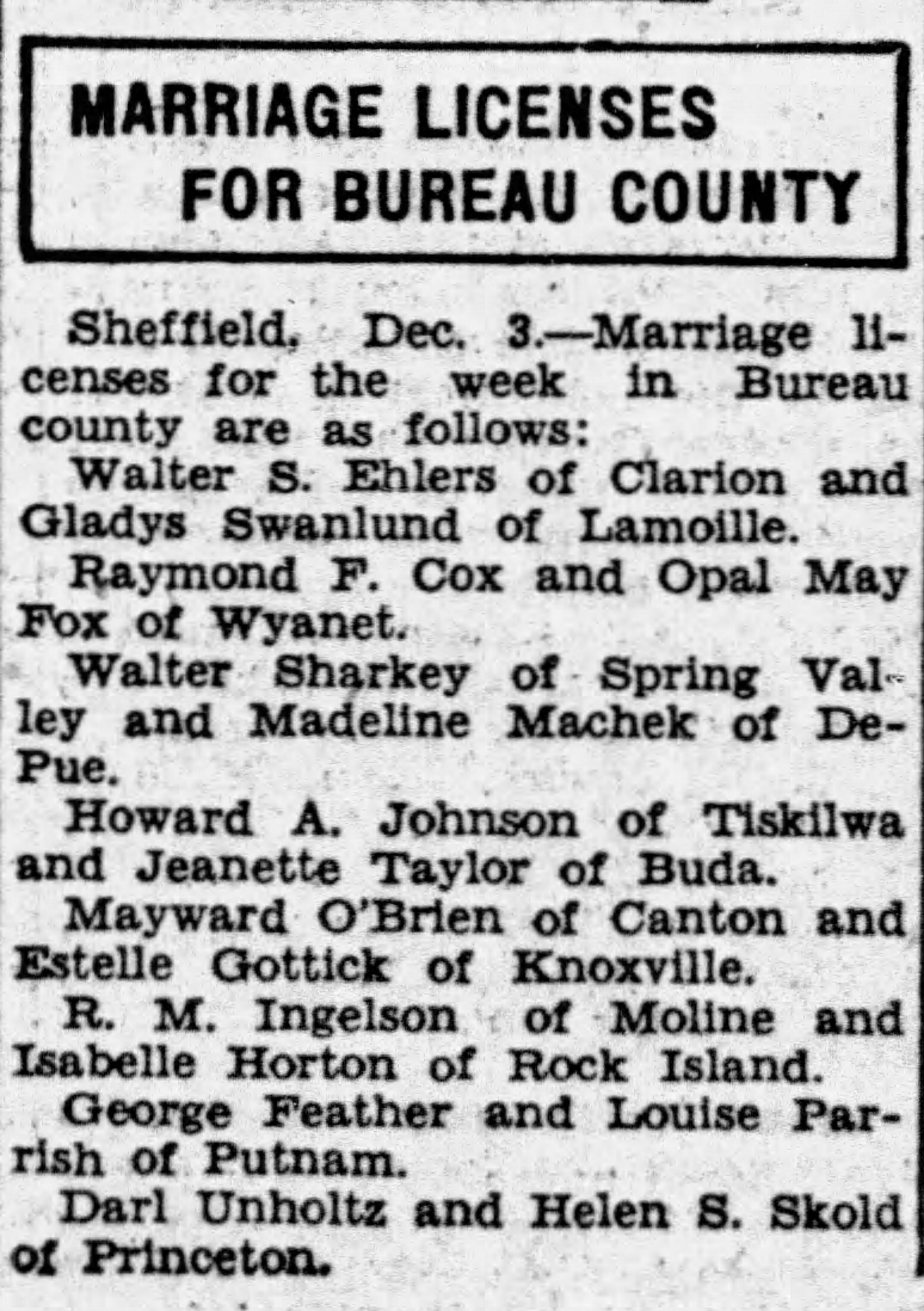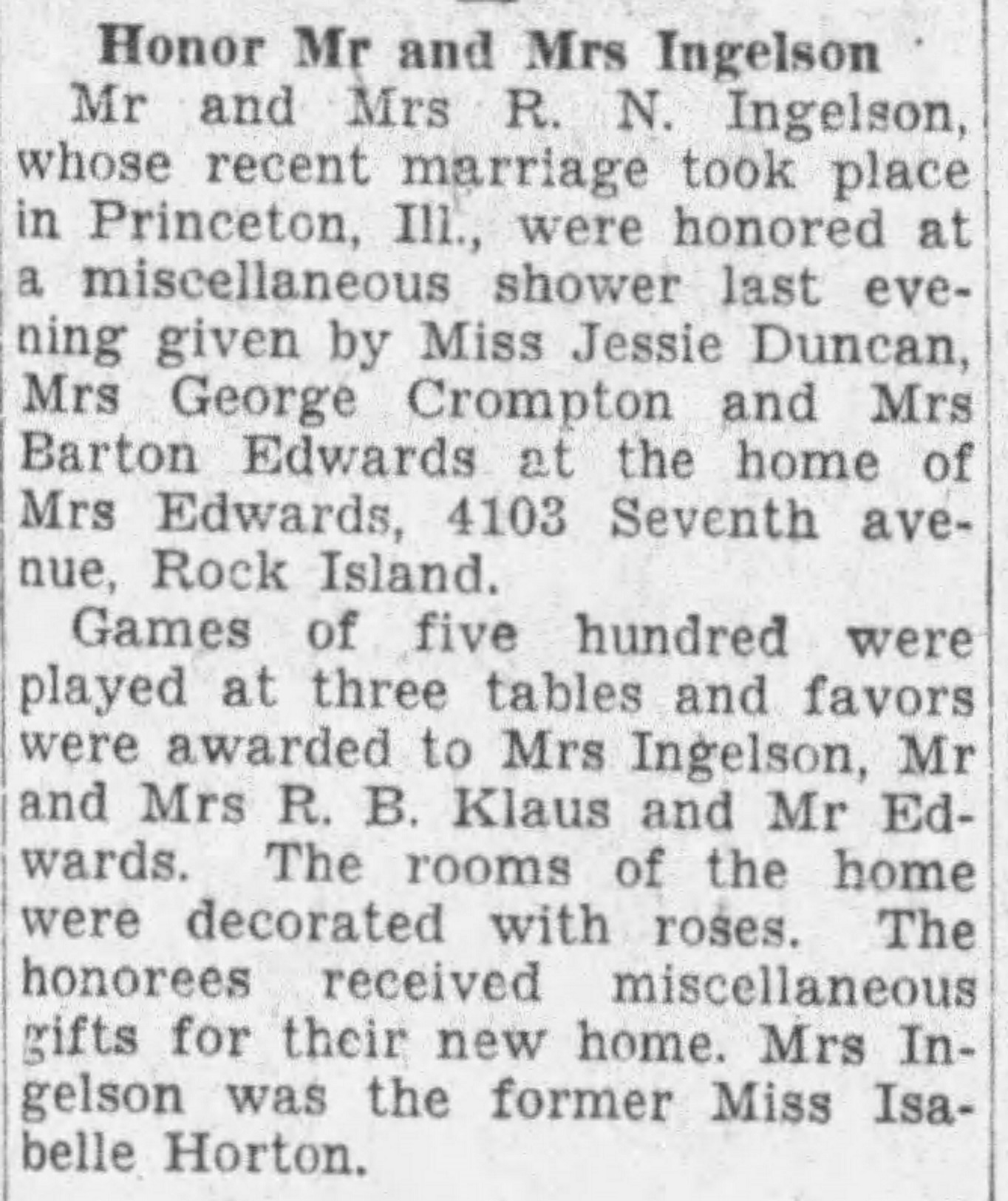 Isabelle Horton were married in 1931 in Illinois, USA. He died.