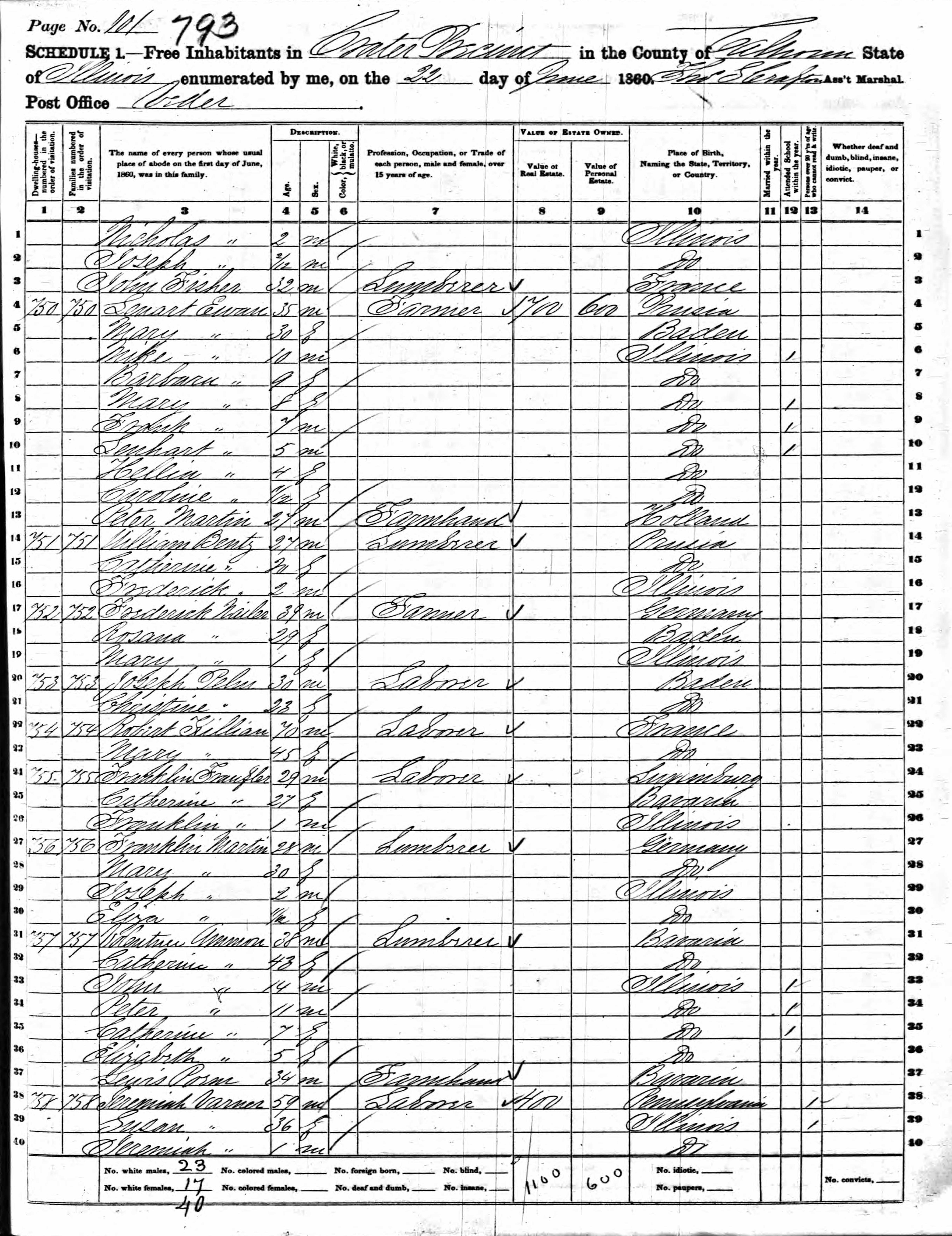 Ammon Family 1860 Federal Census Illinois, Lines 31-37