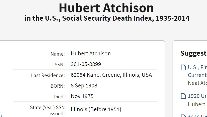 Hubert Neil "Buck" Atchison was born on September 8, 1908 in Illinois, USA. He and