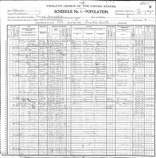 Kuethe Family 1900 Federal Census Illinois, Lines 79-86
