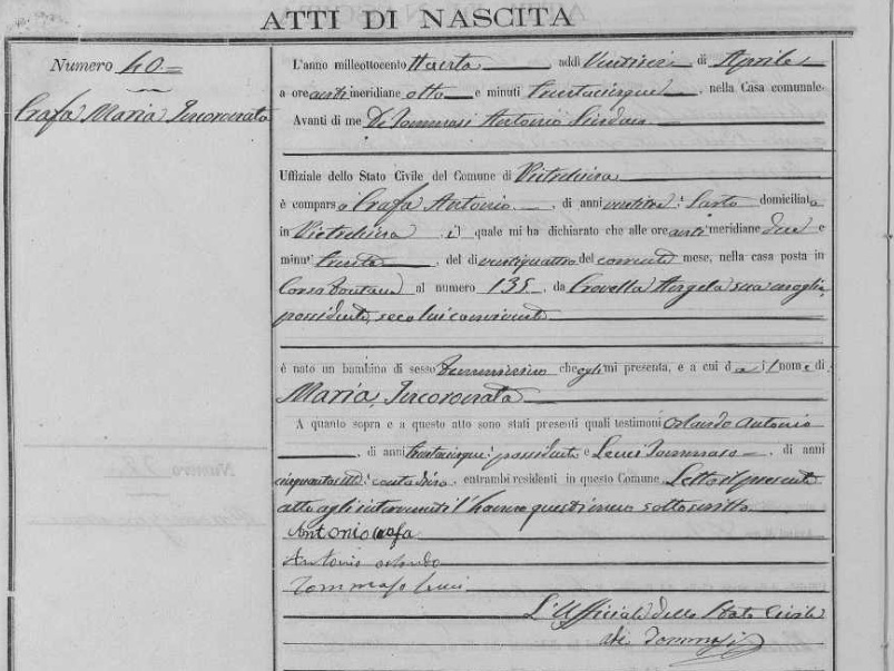 | Daughter | Maria Incoronata "Carrie" Crafa Born: April 24, 1880, Died: 1948 |