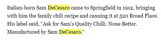 | Son | James V. De Cesare (De Cesaro) Born: April 1, 1916, Died: November 29, 1936 |