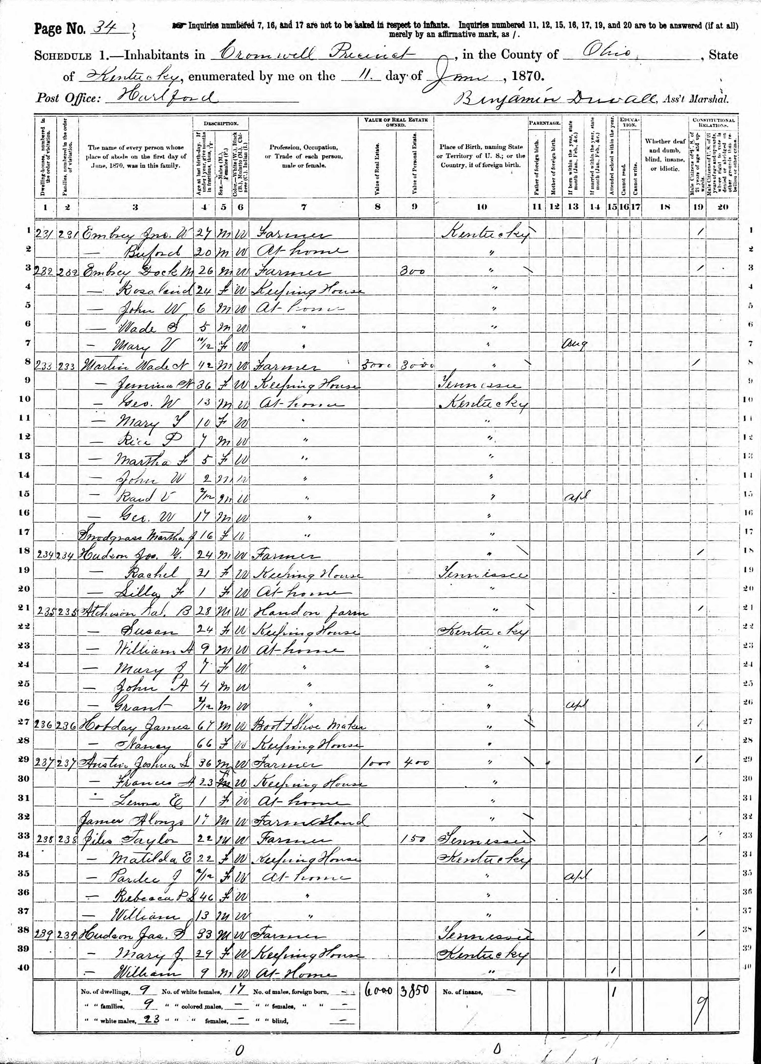 Atchison Family 1870 Federal Census Kentucky, Lines 21-26