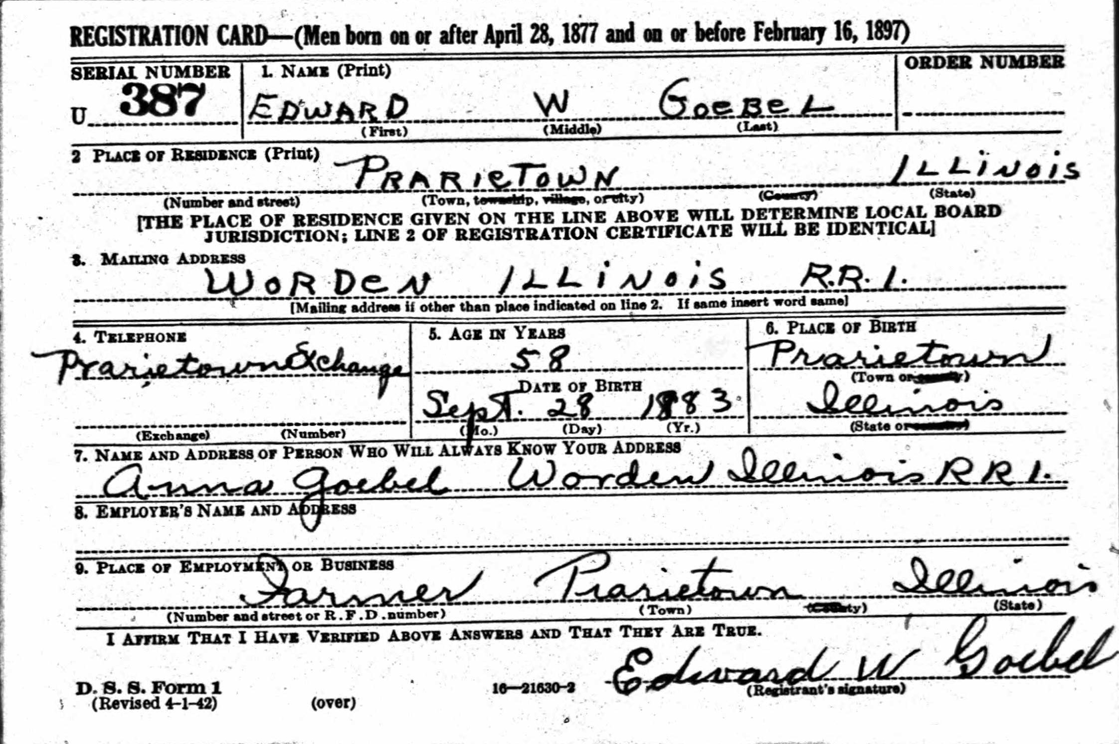 Edward Heinrich Wilhelm Goebel was born on September 28, 1883 in Prairietown, Madison, Illinois, USA. He and