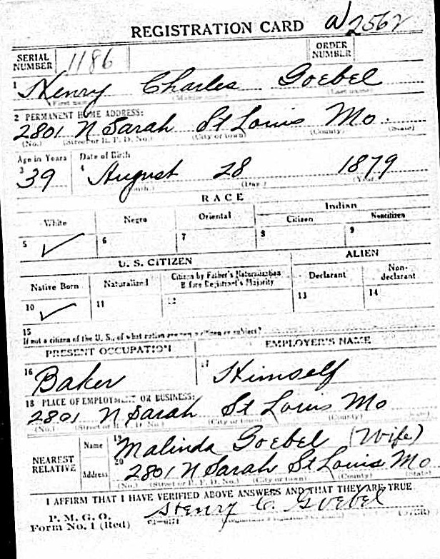 Henry Charles Goebel was born on August 28, 1879 in Prairietown, Madison, Illinois, USA. He and