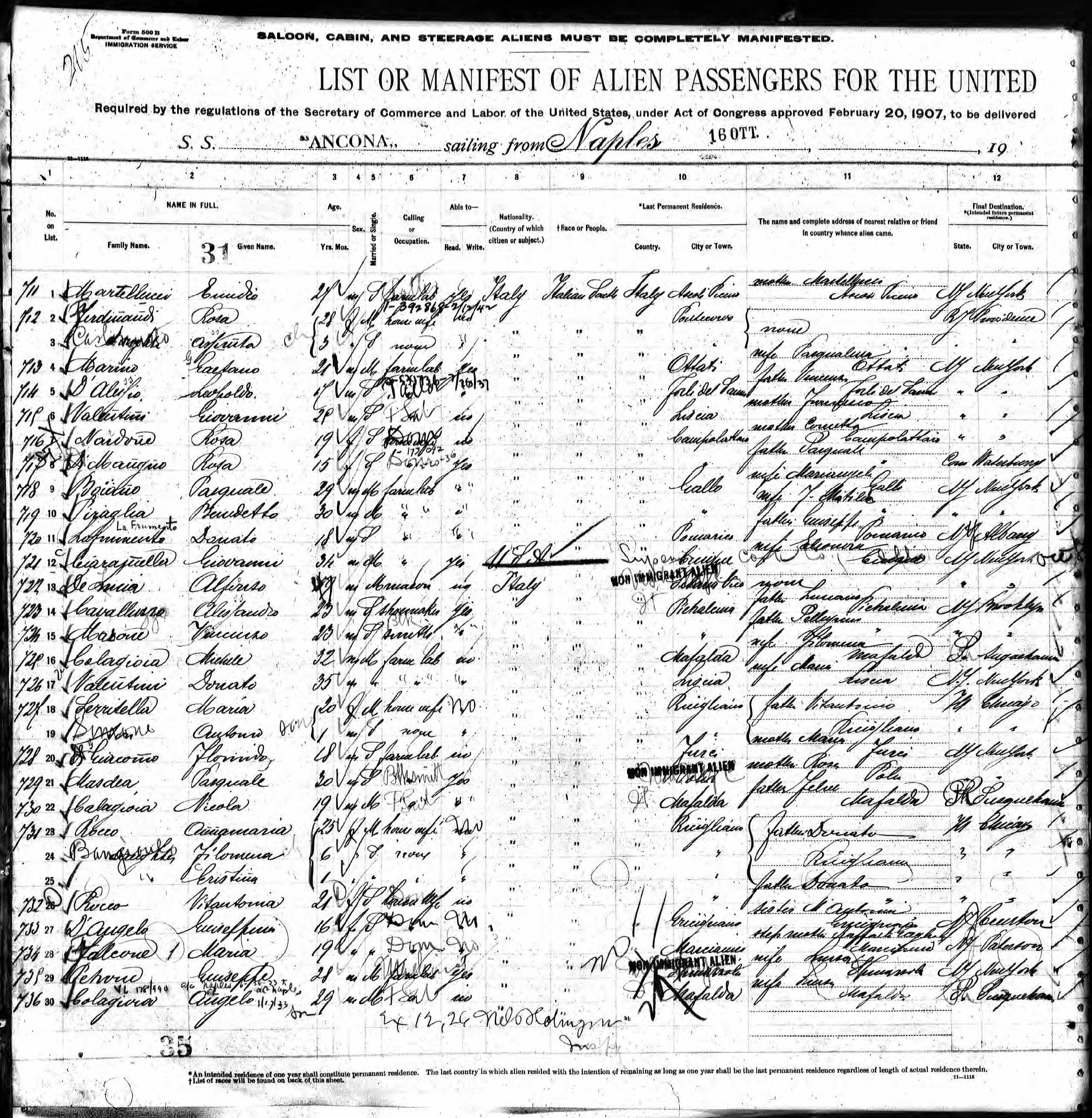 Nicolina Masone 1921 Ship Departure Manifest, Line 25