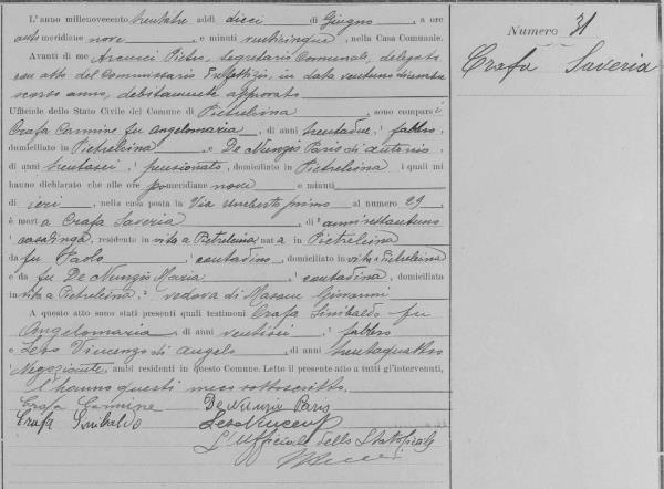 Antonio Crafa was born. He was married. He died.