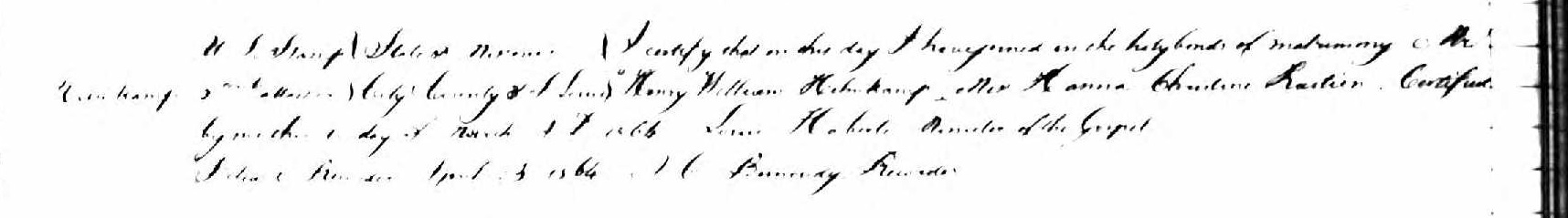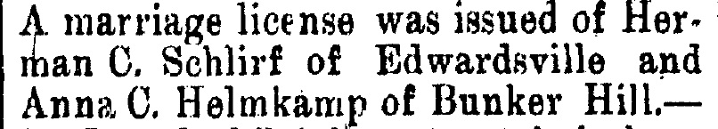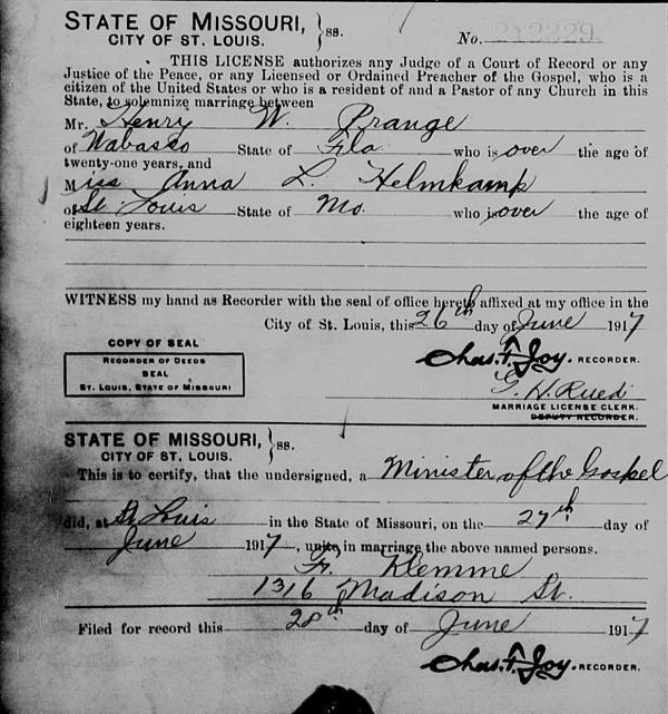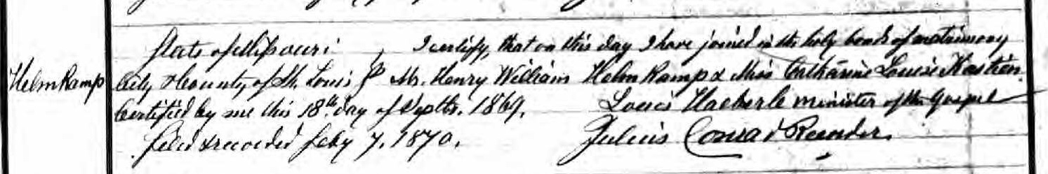 Heinrich Wilhelm Helmkamp were married on September 18, 1869 in St. Louis, Missouri, USA. She and