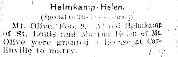 Martha Heine were married on February 11, 1912 in Carlinville, Macoupin, Illinois, USA. He and