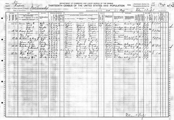 Cooper Family 1910 Federal Census Illinois, Lines 17-19