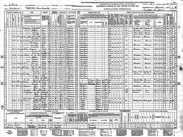 Eden Family 1940 Federal Census Illinois, Lines 58-59