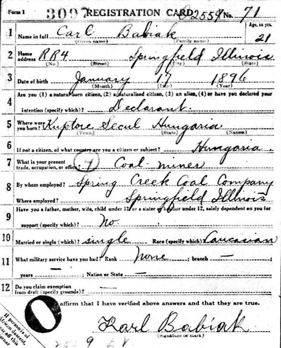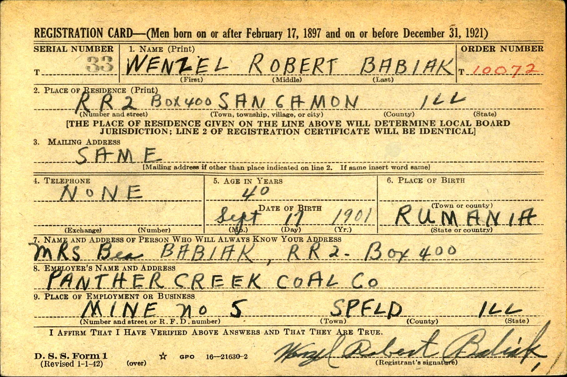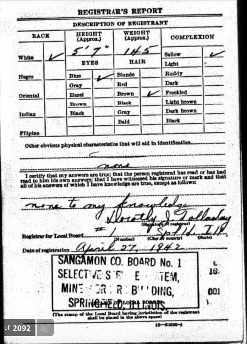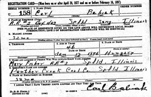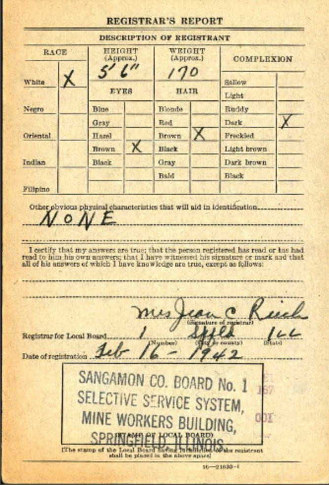 1942 World War II Registration Page 1