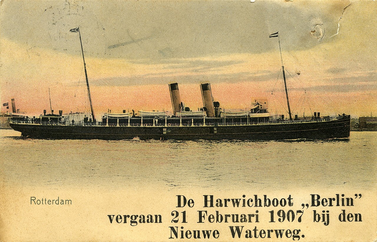 The S.S. Berlin was built in 1908 for Norddeutscher Lloyd (North German Lloyd) by A.G. Weser of Bremen. She was launched on November 7th, 1908 and made her maiden voyage May 1st 1909 sailing from Bremen to Southampton - Cherbourg - New York. In August of 1914, she was converted to a minelayer and later that October one of her mines sank the British battleship H.M.S Audacious. In November 1914, she was interned at Trondhiem, Norway and in 1919 surrendered to Britain and was used as a troopship to India under P&O management. In 1920, she was sold to White Star Line, refitted and renamed S.S. Arabic. In October of 1923, she was then refitted to carry 500-cabin class and 1,200-3rd class passengers and in August of 1924 commenced the Hamburg - Southampton - Cherbourg - Halifax - New York service. In 1926, she was sold to the Red Star Line. In January of 1930 she was sold back to the White Star Line and refitted to carry 177-cabin, 319-tourist and 823-3rd class passengers. She made five round voyages on this service, commencing the last one on July 16th,1930 and was then laid up. She was scrapped in 1931 at Genoa.